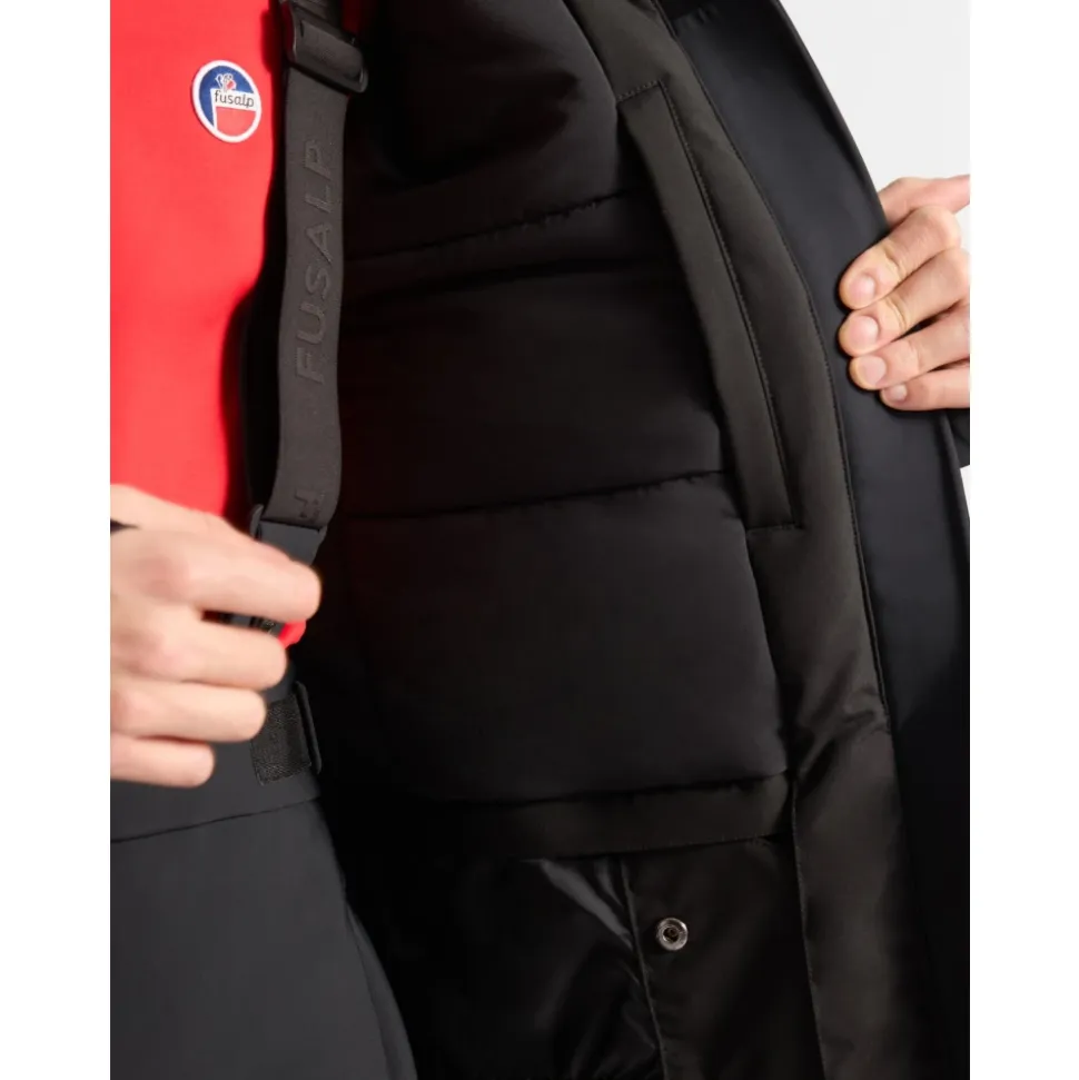 Fusalp Power Ski Jacket kombinerer en strømlinet, sport-chic silhuet med vandtæt stretch softshell-konstruktion for pålidelig performance og isolering på bjerget. Vigtige egenskaber: Blå | Marin | Bbr | Stretch softshell | Vandtæt | Vandafvisende | Åndbar membran | Vindtæt | Termisk isolering (PrimaLoft) | Kritisk tapede sømme | Aftagelig, justerbar hætte | Stormmanchetter med tommelfingerhuller | Aftageligt snefang | Ventilation under armene | Skikortlomme | Flere udvendige og indvendige lommer | Vandafvisende Vislon-lynlåse | Strømlinet sport-chic silhuet | Struktureret snit | Vatteret foring | Fusalp-logo på ærmet | Dimensioner & pasform: Slank pasform | Normal i størrelsen | Sammensætning & pleje: Materiale: 48% polyamid, 38% polyester, 14% elastan | Foring: 88% polyester, 12% elastan | Fyld: 100% polyester | Vask separat og vrangen ud; luk alle lynlåse før vask; brug ikke optisk hvidt eller skyllemiddel; fjern straks efter centrifugering; efterlad ikke tøjet vådt eller opbevaret foldet.