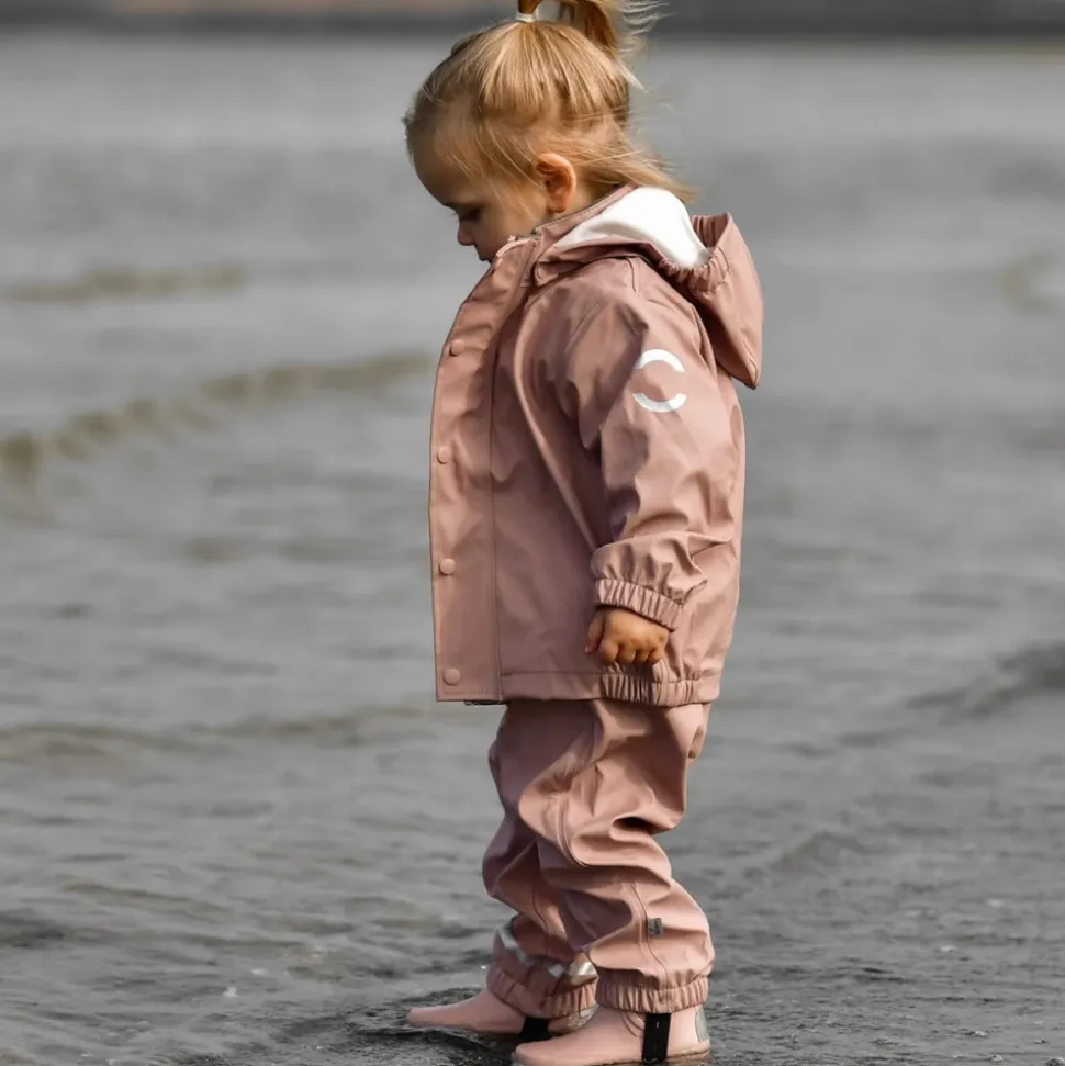Hold dit barn tørt og stilfuldt med dette praktiske og funktionelle genanvendte regnsæt fra danske Mikk-Line. Sættet inkluderer en jakke og bukser i en smuk lyserød farve, perfekt til udendørs eventyr. Udstyret med refleksdetaljer for sikkerhed i mørket, er dette regntøj både vandtæt og vindtæt med svejsede sømme for at holde vandet ude. Bukserne har fodstropper for at holde dem på plads under gummistøvler og en elastisk talje for en behagelig pasform. Hold dit barn tørt og sikkert med Mikk-Lines PU Rain Set.