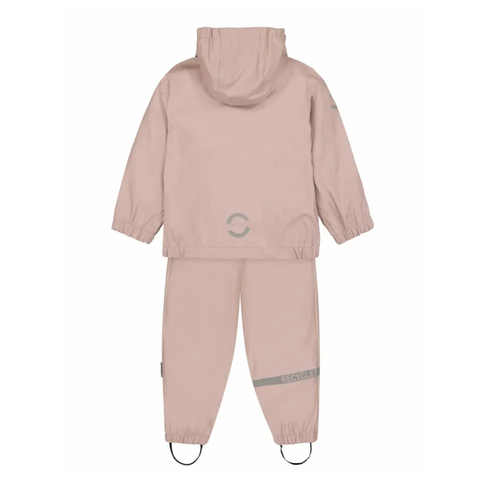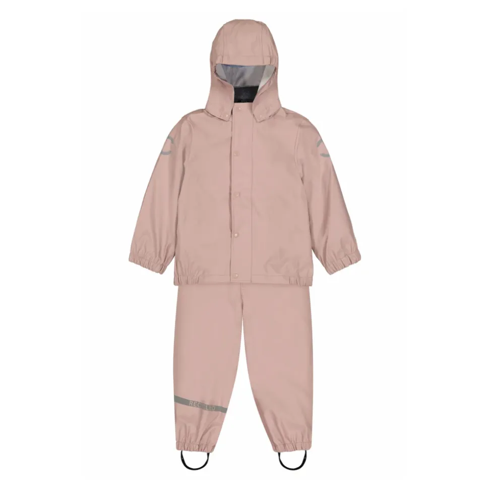 Hold dit barn tørt og stilfuldt med dette praktiske og funktionelle genanvendte regnsæt fra danske Mikk-Line. Sættet inkluderer en jakke og bukser i en smuk lyserød farve. Udstyret med reflekterende detaljer for sikkerhed i mørket, er dette regntøj både vand- og vindtæt med svejsede sømme for at forhindre vand i at trænge igennem. Bukserne har fodstropper for at holde dem på plads under gummistøvler, og justerbare seler til størrelser 74-104. Hold dit barn tørt og sikkert med dette Mikk-Line PU Rain Set W. Susp. .