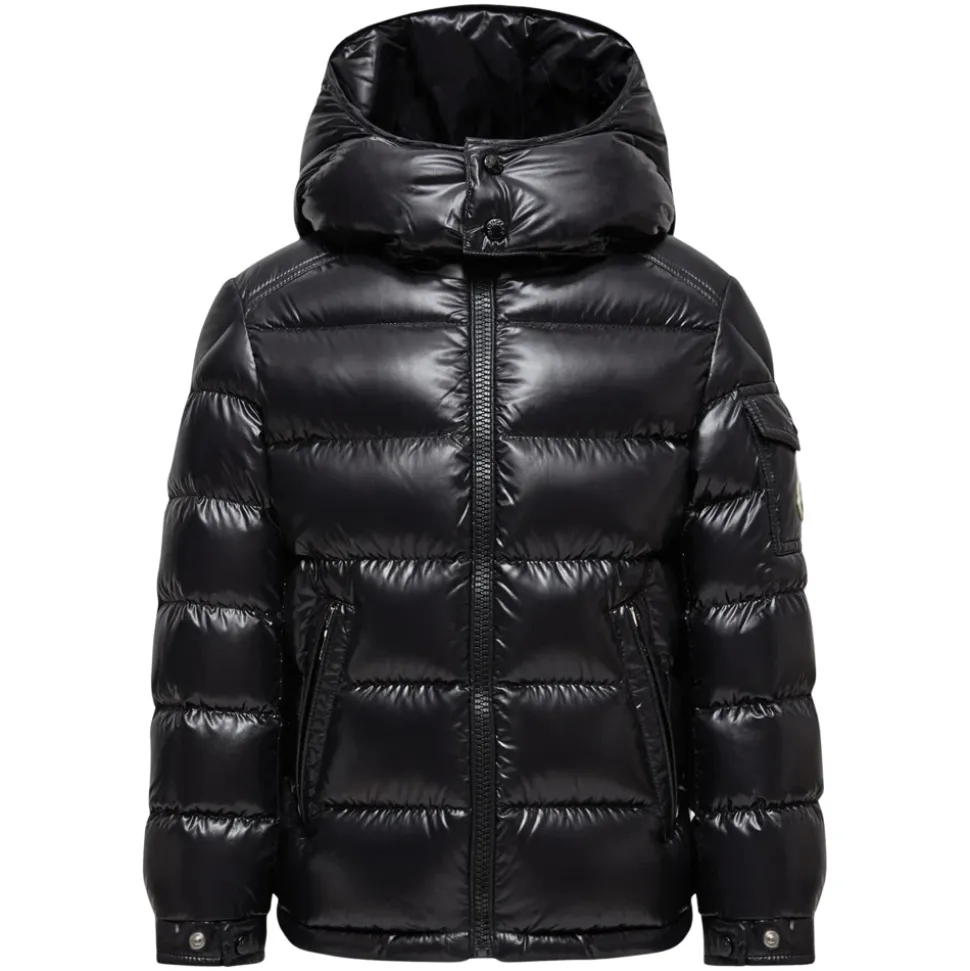 Opgrader din lille drengs vintergarderobe med Monclers Maya jakke. Fremstillet med præcision i quiltet Laqué Nylon, denne jakke har en aftagelig hætte, høj krave og ikonisk filtlogo. Designet til både stil og funktionalitet, inkluderer den lynlåslukning, justerbare manchetter og flere lommer. Yderskal lavet af 100% polyamid, foring af 100% polyamid og polstring af 90% dun og 10% fjer med 100% polyesterdetaljer.