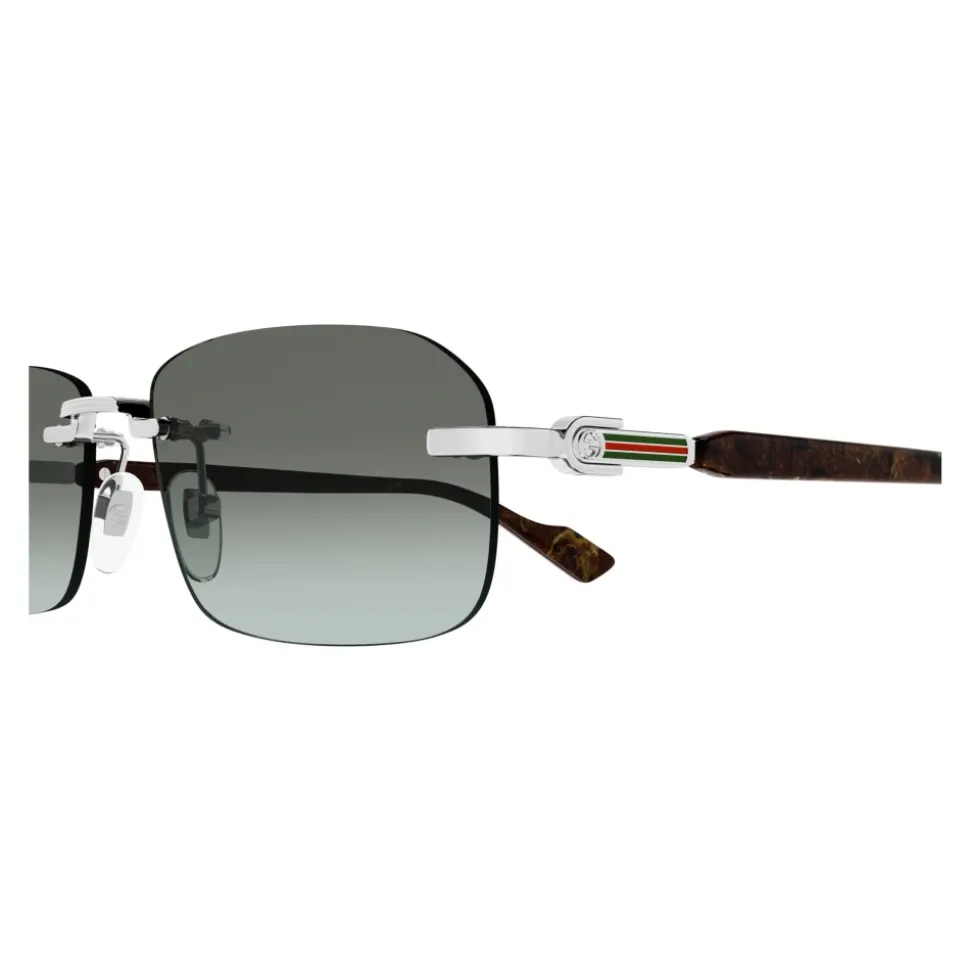 Gucci Rectangular Sunglasses kombinerer en smal, arkivinspireret silhuet med brandede tempeldetaljer til hverdagsbrug. Designet balancerer raffineret stil med praktisk UV-beskyttelse. Vigtigste egenskaber: Grå | Sølv | Metal | UV-beskyttelse (UV400) | Inkluderer originalt etui | Inkluderer pudseklud | Inkluderer ægthedsbevis og garanti | Rektangulær ramme | Interlocking GG-detalje på stænger | Acetat-stangender | Dimensioner og pasform: Linsebredde: 56 mm | Bro: 16 mm | Stanglængde: 140 mm | Medium pasform | Sammensætning og pleje: Metal (ramme) | Acetat (stangender) | Plast (linser) | Rengør linserne med den medfølgende mikrofiberklud, og opbevar dem i det originale etui.