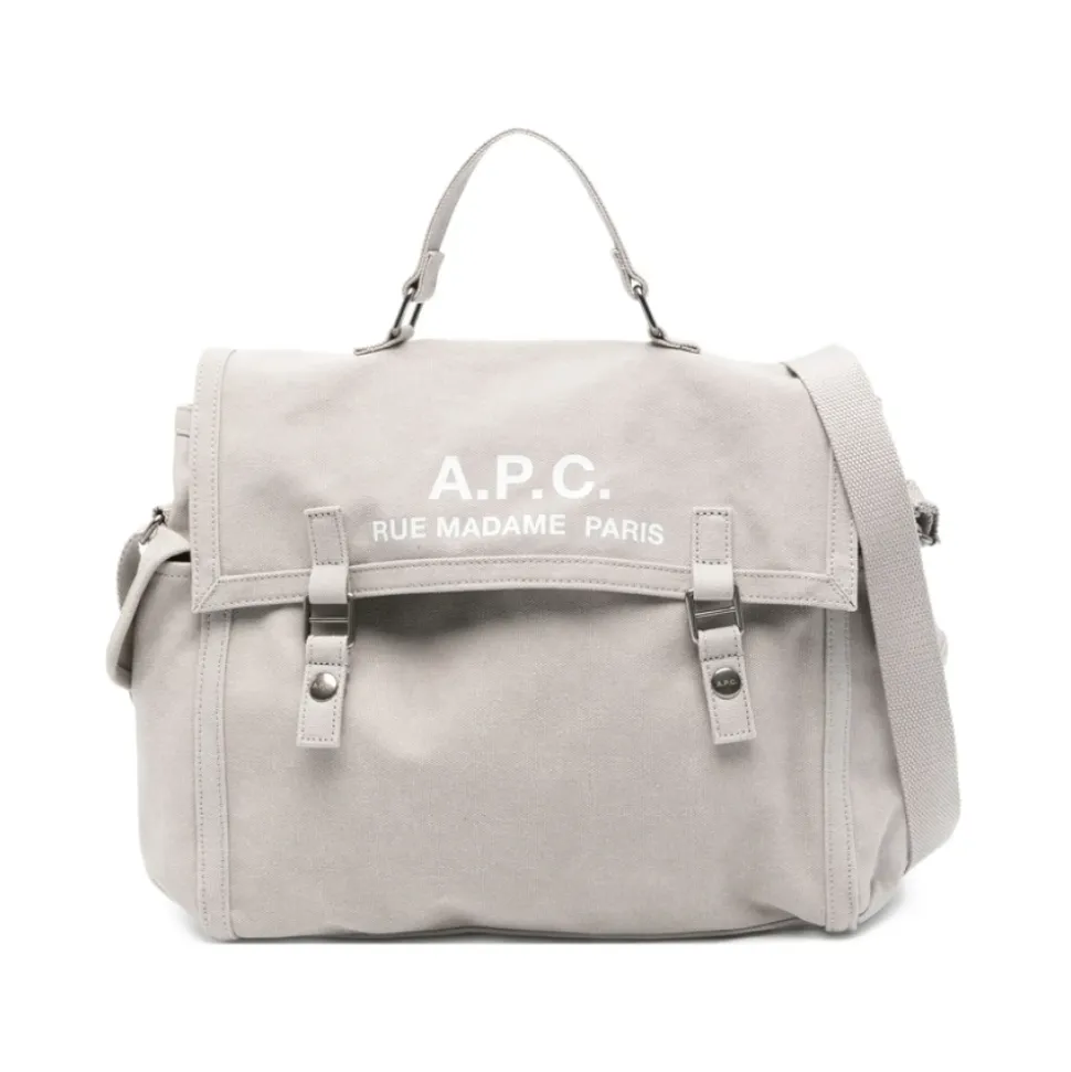 A.P.C. Recuperation Satchel er en alsidig lærredstaske, der kombinerer et tophåndtag med en justerbar skulderrem for fleksibel transport. Den er designet til organiseret hverdagsbrug og har en klap med spændefastgørelse og en indvendig lynlåslomme til sikker opbevaring. Nøgleattributter: Hvid | Neutral | Lysegrå | Lærred | Justerbar skulderrem | Indvendig lynlåslomme | Klap | Spændefastgørelse | Tophåndtag | Dimensioner og pasform: Bredde: 45,0 centimeter | Højde: 30,0 centimeter | Dybde: 8,0 centimeter