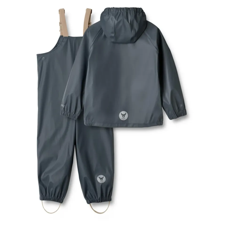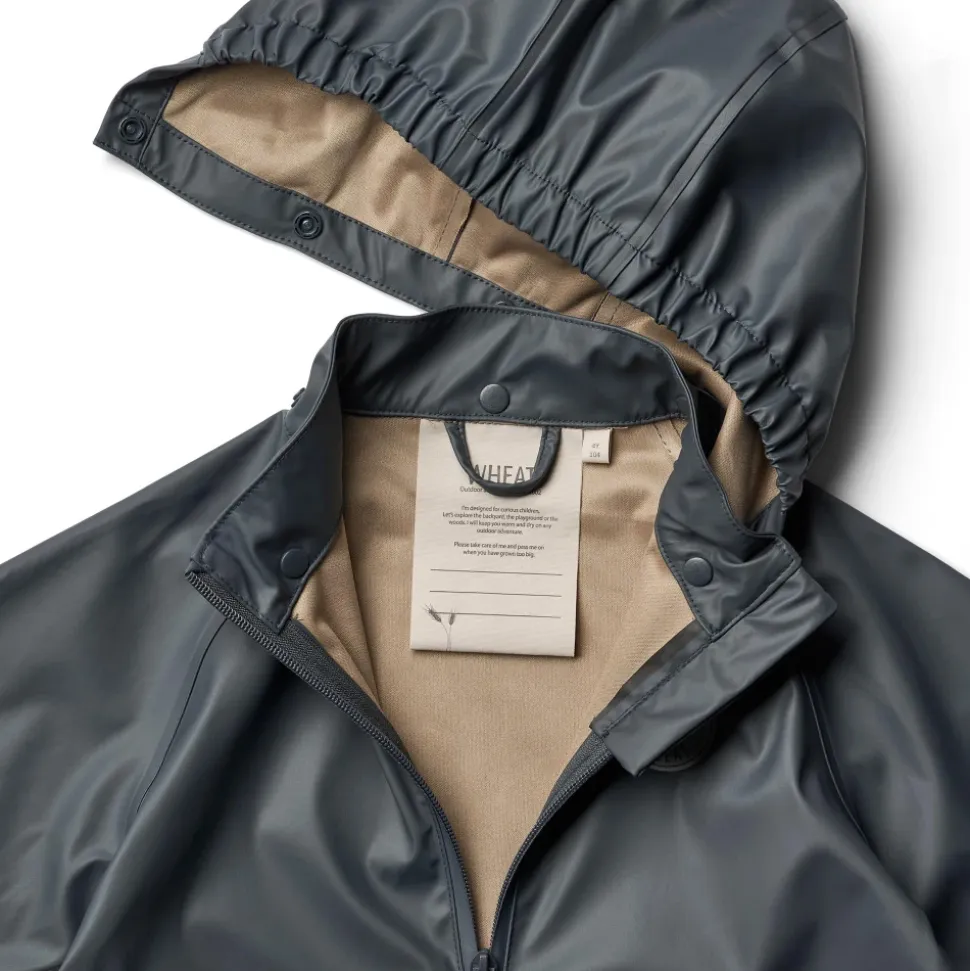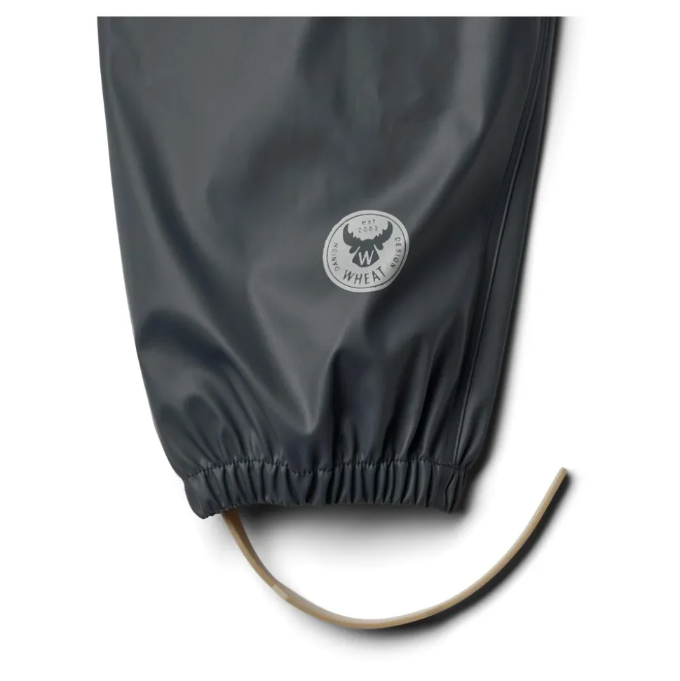 Vær forberedt på regnfulde dage med Wheat – Rainwear Charlie i blæk. Denne ensfarvede mørkeblå regnsæt er velegnet til både drenge og piger og består af en regnjakke og regnbukser. Jakken har en aftagelig og justerbar hætte, elastiske ærmekanter, vandtæt lynlås med hagebeskytter, sidelommer og logo-reflekser. Bukserne har justerbare elastiske seler, justerbare fodstropper, trykknapper i taljen og logo-reflekser. Wheats praktiske regnsæt er lavet af blødt, let materiale, der sikrer komfort og bevægelsesfrihed. Det er vandtæt, smudsafvisende og nemt at rengøre. Kombiner det med Wheats termotøj for ekstra isolering på kolde dage. Materiale: 100% polyester med blød polyurethanbelægning. Standard 100 af OEKO-TEX® certificeret. Vandtryk: 8.000 mm. Alle sømme er vandtætte og svejset. Vandtæt lynlås. Vask: Maskinvask ved 40 grader. Må ikke tørretumbles. Husk at følge vaskeanvisningerne. Stilnummer: 7350i-970R_1060.