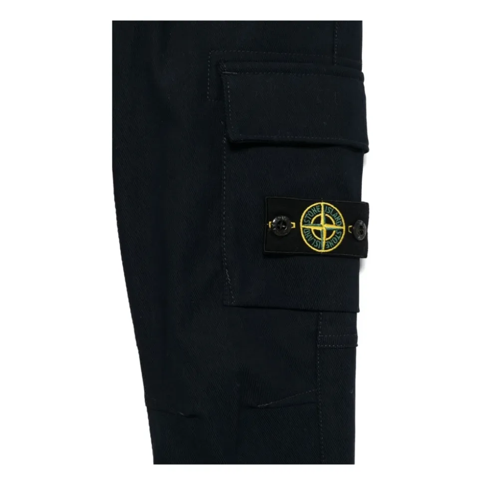 Opgrader din stil med Stone Islands Regular Tapered Bukser i marineblå. Disse bukser er fremstillet af en førsteklasses stofblanding og tilbyder både komfort og et elegant look. Produkt detaljer: Navy Blue | Sort | Bomuldsblanding | Elastisk taljebånd | Twillvævning | To sidelommer | To sidelommer med bælg | Dimensioner og pasform: Regular fit | Sammensætning og pleje: 55% bomuld | 40% polyamid | 5% elastan | Maskinvask kold, tørretumbles ved lav varme
