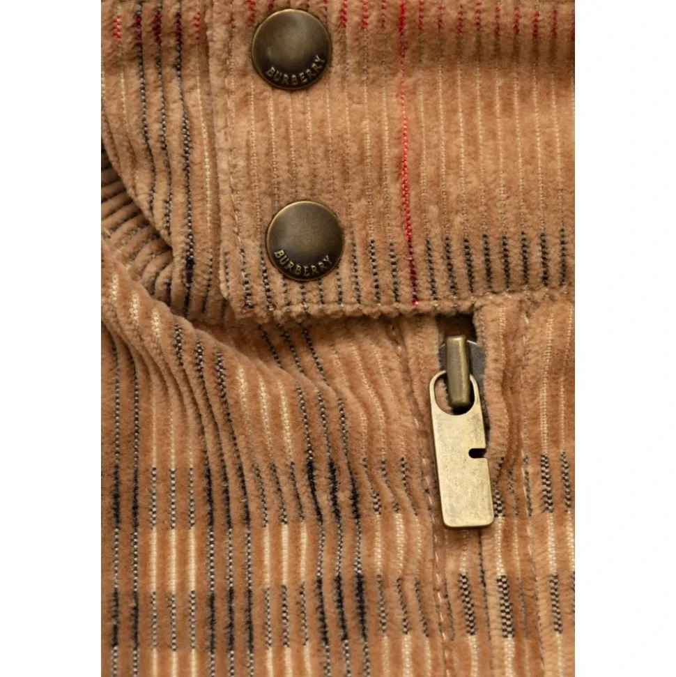 RIBBED JACKET fra Burberry Kids er en tidløs essens af britisk elegance i en børneudgave, designet til drenge i alderen 4-14 år. Den imponerer med sit KLASSISKE SNIT, der er infunderet med en følelse af modernitet – en enkel men raffineret silhuet med let udvidede skuldre og ærmer afsluttet med knappede manchetter. Jakken er lavet af BLØD CORDUROY med en sofistikeret ribbet struktur, der glæder med sin delikatesse og luksuriøse finish. Dens unikhed understreges af det IKONISKE CHECK-MØNSTER i nuancer af beige, accenteret med sort, rød og hvid – et design uløseligt forbundet med Burberries tradition. Detaljerne – metal knapper og en lynlås med DET INDGRAVEREDE BRAND NAVN – er subtile, men udtryksfulde berøringer af originalitet. Ståkraven, der lukkes med to knapper, fuldender karakteren af stykket og sikrer komfort og en elegant tilstedeværelse. HVORFOR VÆLGE DETTE PRODUKT? * Et eksklusivt tilbud fra en anerkendt designer * Høj kvalitet bomuld, der sikrer både komfort og holdbarhed * Unikt, let genkendeligt skotsk ternmønster * Perfekt udførte detaljer og enestående finish * Et ideelt valg til koldere dage og særlige lejligheder