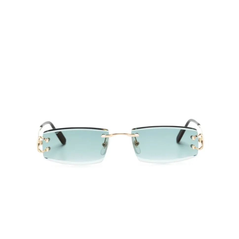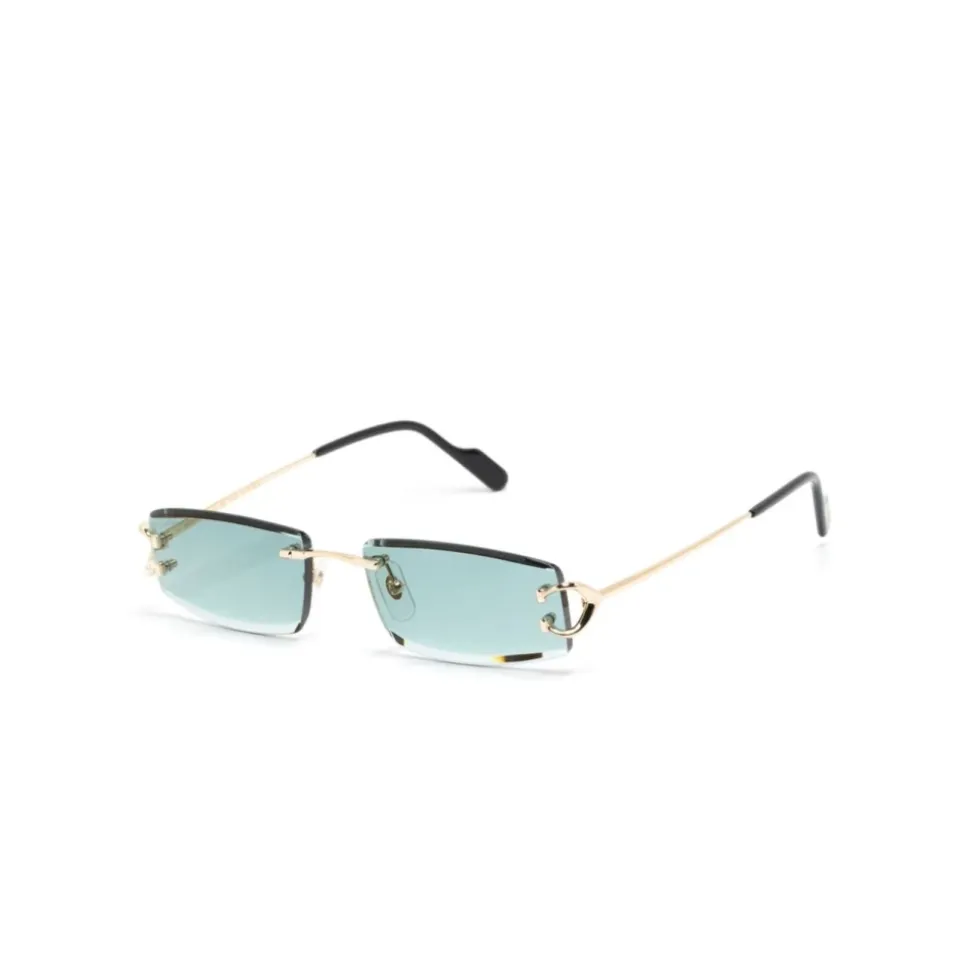 Cartier Rimless Rectangle solbriller kombinerer en slank, rammeløs silhuet med raffinerede guldmetaldetaljer for et poleret hverdagslook. Designet kombinerer Cartiers karakteristiske hardware med funktionelle næsepuder for komfort. Vigtigste egenskaber: Gul | Guld | Metal | 100% UVA/UVB-beskyttelse | Justerbare gumminæsepuder | Acetat stangspidser | Inkluderer originalt etui og renseklud | Ægthedsbevis og garanti medfølger | Rammeløs rektangulær form | C Décor detalje ved hængsler | Logo ætset på linse | Facetslebet linsekant | Dimensioner og pasform: Linsebredde: 56 mm | Brobredde: 18 mm | Stanglængde: 145 mm | Smal pasform | Sammensætning og pleje: Metal | Acetat | Bio nylon (linser) | Rens linser med den medfølgende klud og opbevar i det originale etui.