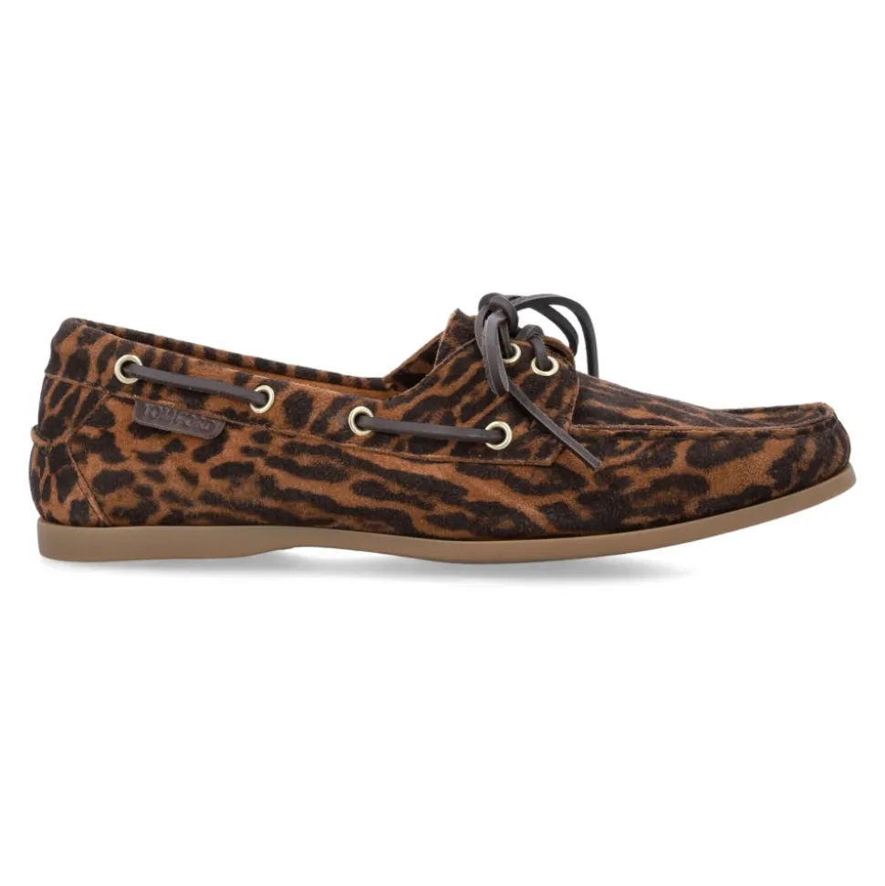 Tom Ford Robin Sejlersko er en raffineret udgave af den klassiske sejlersko, fremstillet i kalveskindsruskind med en snørelukning og gummisål med lameller for pålideligt greb. Vigtige egenskaber: Brun | Brun whiskey ocelot | Kalveskindslæder | Gummisål for forbedret greb | Snørelukning | Læder indersål | Klassisk sejlersko silhuet | Tonal logo patch | Dimensioner og pasform: Normal i størrelsen | Sammensætning og pleje: Overdel: 95% kalveskindslæder, 5% messing | Foring: 100% kalvelæder | Sål: 100% gummi