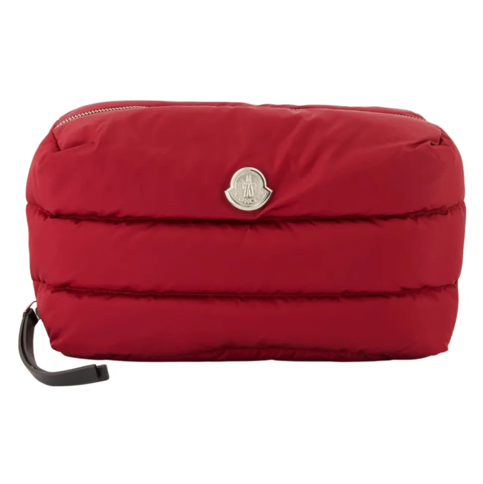 Moncler Caradoc rød toilettaske er et stilfuldt tilbehør til kvinder. En del af efterår-vinter 2025 kollektionen, lavet af vandafvisende nylon.