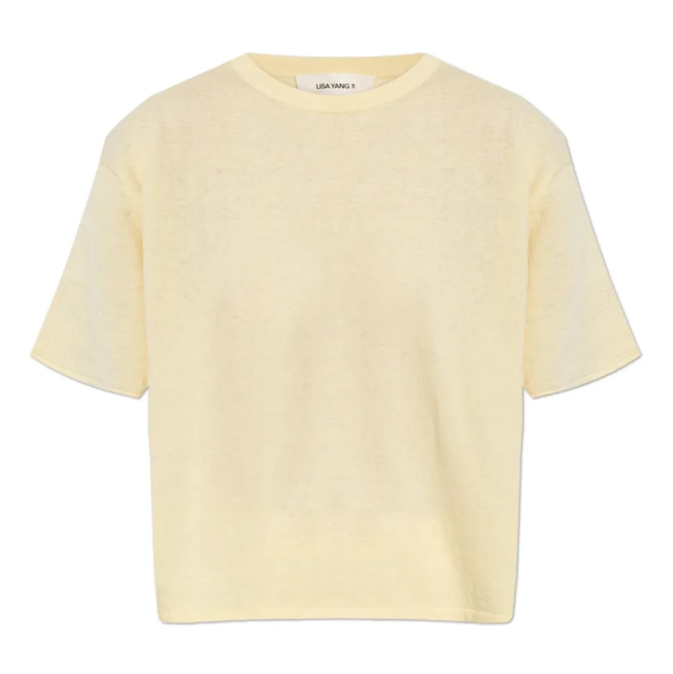 Rubie Top fra Lisa Yang er en minimalistisk striktrøje, der er skabt til et afslappet og raffineret look. Dens bløde bomulds-cashmere blanding og rene silhuet gør den velegnet til et løftet hverdagslook. Vigtige egenskaber: Gul | Bomulds-cashmere | Blød håndfølelse | Holdbar | Rund hals med ribkant | Brede, afslappede ærmer | Løs, let oversized silhuet | Ingen logoer eller tryk | Dimensioner og pasform: Modelhøjde: 177 cm | Bryst: 83 cm | Talje: 61 cm | Hofter: 89 cm | Modellen er iført størrelse: 1 | Løs, let oversized pasform | Sammensætning og pleje: 70% bomuld | 30% cashmere | Rens eller håndvask kold. Brug ikke blegemiddel eller skyllemiddel. Lægges fladt til tørre; vrid ikke. Brug kun strygejern ved lav varme.