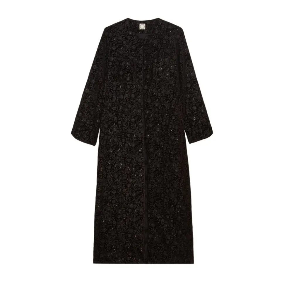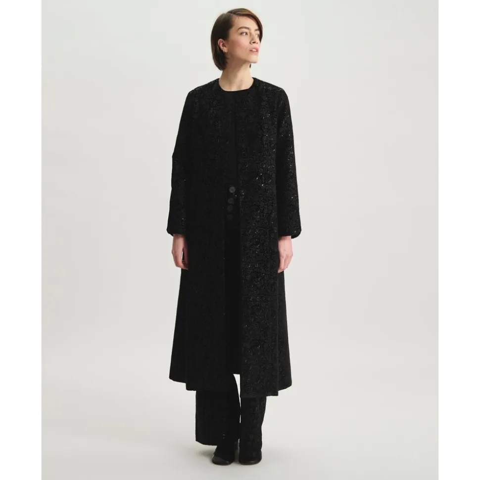 Ines de la Fressange Paris Rusalka Coat kombinerer en lang, struktureret silhuet med diskret broderi for et raffineret, tekstureret overtøj, der er egnet til et elegant hverdagslook. Nøgleattributter: Sort | Noir | Knaplukning foran | Påsatte lommer foran | Lange ærmer | Lang silhuet | Struktureret silhuet | Diskret broderi | Subtil teksturkontrast | Skræddersyet knaplukning foran | Mål og pasform: Figursyet snit