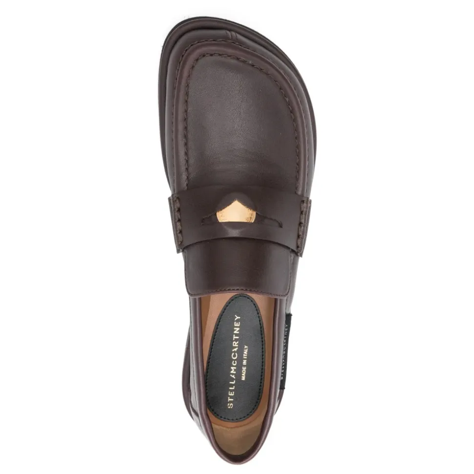 Stella McCartney Ryder Classic Loafers er en slip-on penny loafer, der kombinerer en struktureret firkantet tå med komfort med lav hæl. Velegnet til et poleret hverdagslook, og de fungerer lige så godt med skræddersyede outfits eller smarte, afslappede looks. Vigtige egenskaber: Brun | VEGEA | Slip-on konstruktion | Fuldt foret | Håndlavet i Italien | Firkantet tå | Penny keeper | Hævet tåboks | Dimensioner og pasform: Hælhøjde: 1,8 cm | Normal i størrelsen | Sammensætning og pleje: Vegansk læder (VEGEA) | Foring: Vegansk læder | Sål: Gummi | Pletrens kun med en blød, fugtig klud.