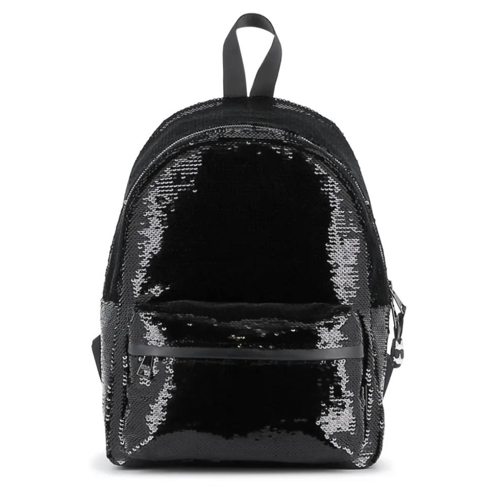 Karl Lagerfeld rygsæk med pailletter kombinerer en funklende pailletfinish over det hele med praktisk organisering til hverdagsbrug. Den kombinerer dekorativ appel med funktionelle detaljer som en lynlåslomme foran og polstrede stropper. Nøgleattributter: Sort | Polyester | Dobbelt lynlåslukning | Lynlåslomme foran | Polstrede justerbare skulderstropper | Bærehåndtag foroven | Pailletudsmykning over det hele | Skinnende pailletdekoration | Sammensætning og pleje: 100% polyester