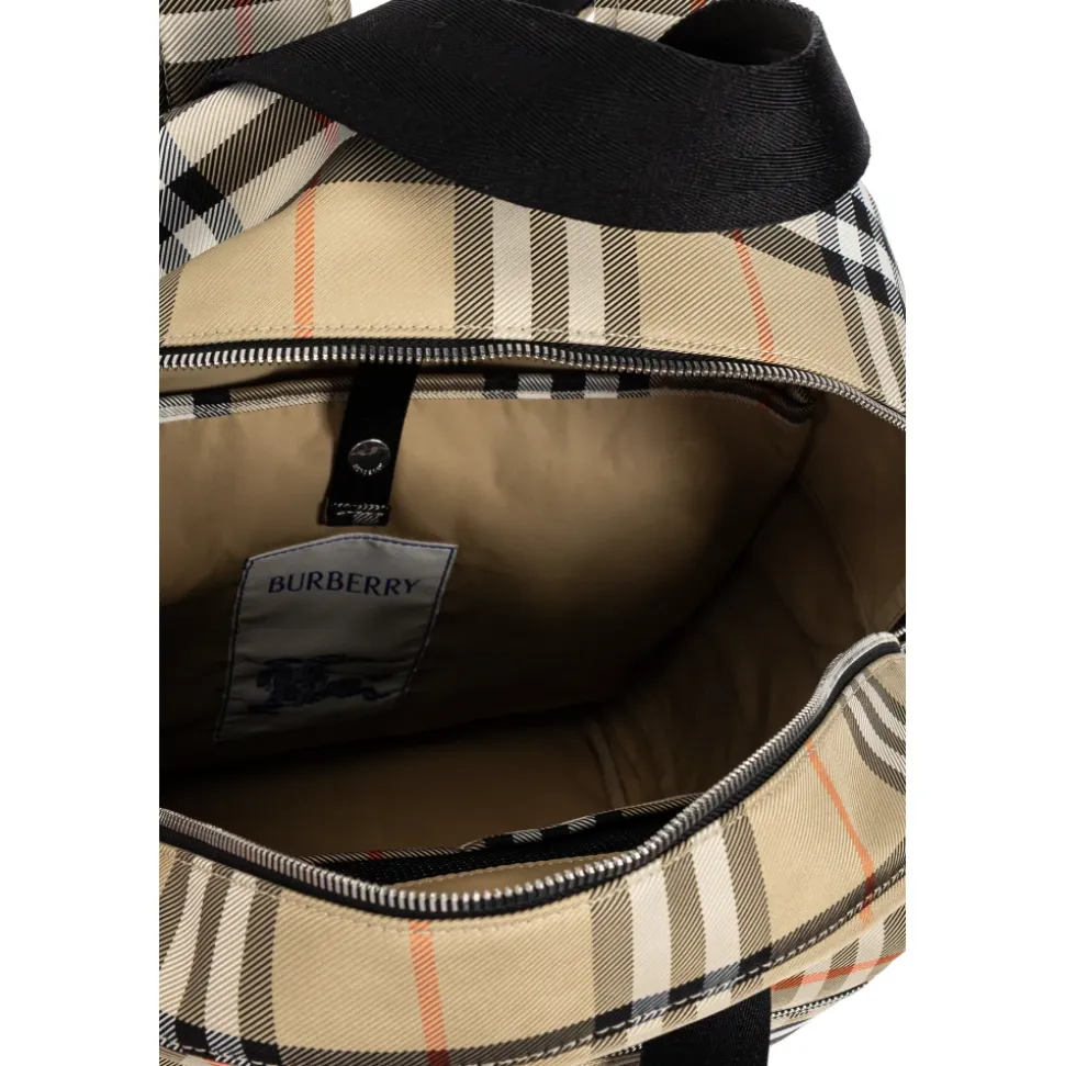 RYGSÆK MED SKIFTEUNDERLAG fra Burberry Kids er et sofistikeret valg dedikeret til de yngste entusiaster af stil og komfort. Designet i det meget genkendelige beige ternemønster med sorte, hvide og røde accenter, udstråler den essensen af britisk elegance. Lavet af høj kvalitet syntetisk materiale med en raffineret finish, er den ikke kun holdbar, men også ekstraordinært let at holde ren – hvilket gør den til den perfekte ledsager til familieeventyr. Rygsækkens klassiske, afrundede form, brede justerbare stropper og robuste håndtag sikrer behagelig bæring, mens den praktiske frontlomme og tankevækkende detaljer, såsom sølv lynlåse, fremhæver dens unikhed. HVORFOR ER DET VÆRD AT KØBE DETTE PRODUKT? * Ikonisk Burberry Kids ternemønster * Ekstraordinær holdbarhed og let rengøring * Tankevækkende detaljer der forbedrer brugerkomfort * Det ideelle valg for forældre, der værdsætter stil og funktionalitet Højde: 41cm Bredde: 30cm