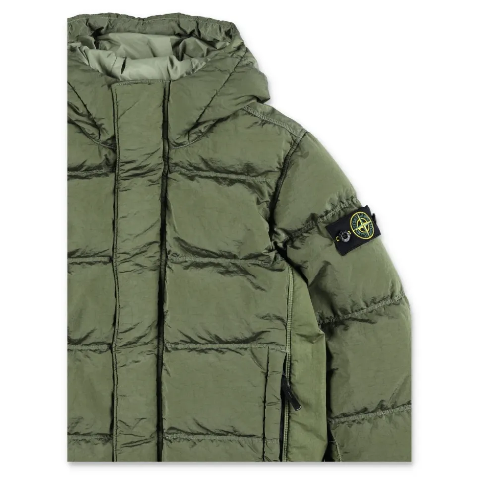 Hold din aktive unge mand varm og stilfuld med denne Stone Island Junior dunjakke. Krøl effekten, hætten, stående krave og flere lommer gør den både fashionable og funktionel. Lavet af 100% polyamid stof og 80% dun 20% fjer fyldning for ultimativ komfort og varme.