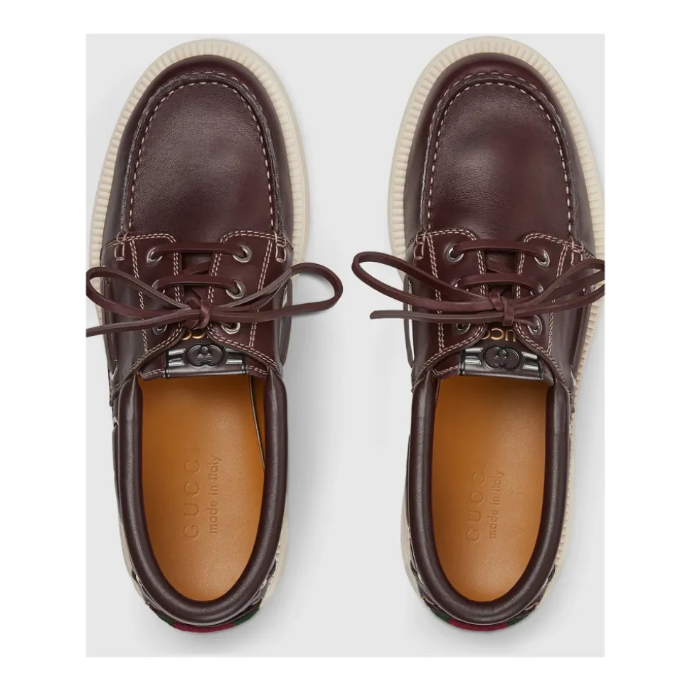Gucci Sailor Shoes kombinerer en lav lace-up silhuet med husets signatur Interlocking G og web-detalje, designet til hverdagsbrug med en markant finish. Nøgleattributter: Rød | Læder | Snørelukning | Gummisål | Web-detalje bagpå | Interlocking G | Gucci-pløs | Sammensætning & pleje: Læder | Web-detalje | Gummisål