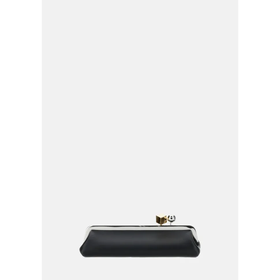 Jacquemus’ Salon clutch er en lang, strømlinet taske fremstillet i ultra-blødt lammeskind. Den kombinerer en aftagelig, tynd skulderrem med en karakteristisk spænde i blandet metal til alsidig brug både dag og aften. Vigtige egenskaber: Sort | Lammeskindslæder | Aftagelig, tynd skulderrem | Spænde lukning med blandede metaldetaljer | Indvendig læder patch lomme | Lang clutch silhuet | Kontrast runde og firkantede spænde detaljer | Sølv- og guldfarvet metal hardware | Påsat indvendig læderlomme | Ultra-blød lammeskindsfinish | Dimensioner og pasform: Længde: 35 cm | Højde: 12 cm | Dybde: 8.5 cm | Sammensætning og pleje: 100% lammeskind | Foring: 100% bomuld | Undgå kontakt med kosmetik, vand og varme. Undgå langvarig udsættelse for sollys. Opbevares i støvposen på et tørt sted.
