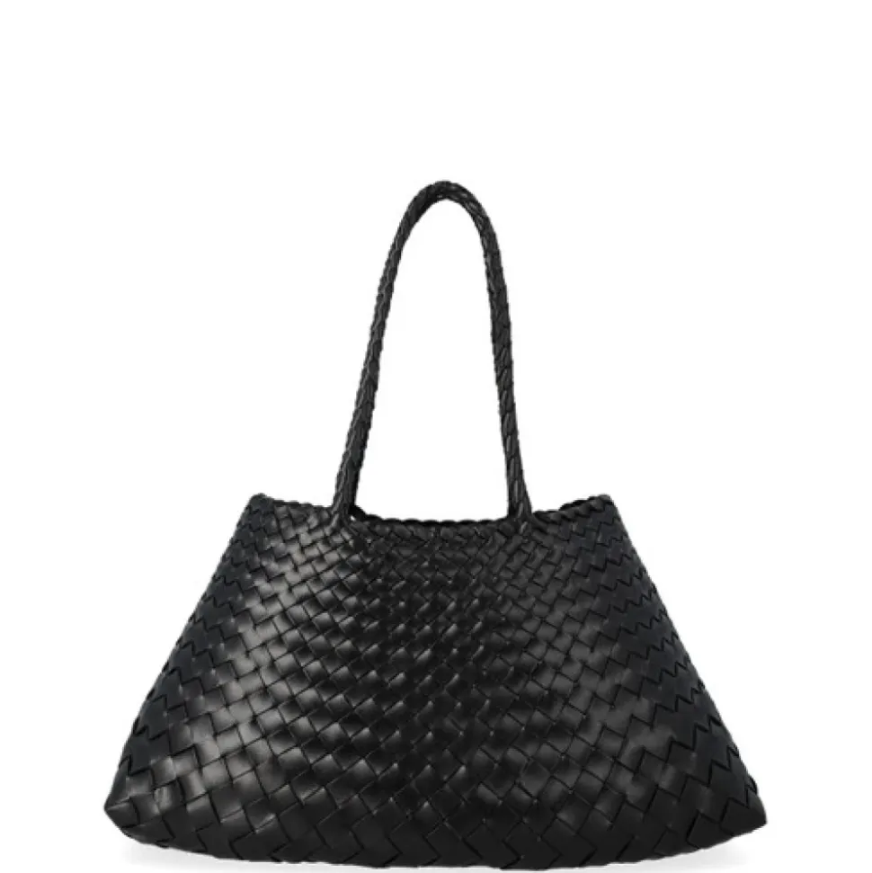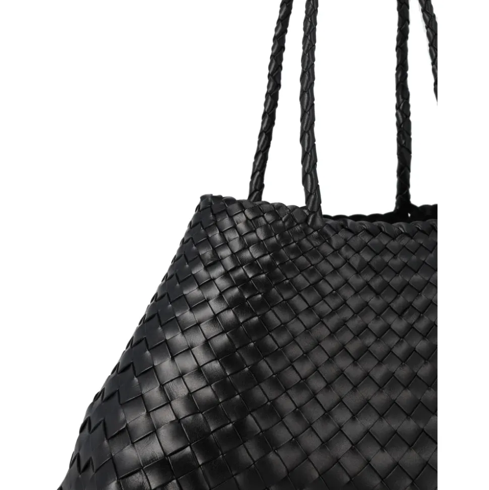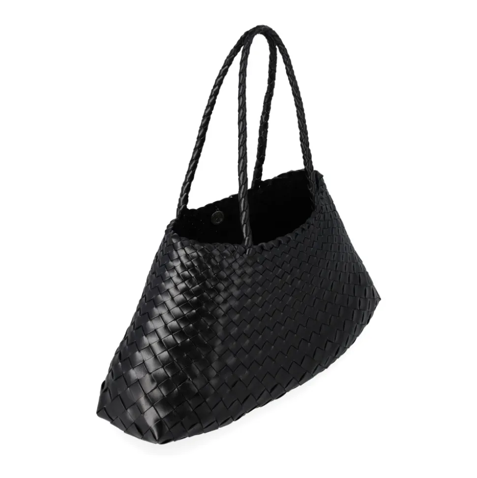 Dragon Diffusion Santa Croce Big er en håndvævet lædertaske, der defineres af sin kurvevævskonstruktion og rummelige, uforede interiør. Ideel til hverdagsbrug i byen, den har to håndvævede læderhåndtag og en signatur St. Christopher-charm indeni. Nøgleattributter: Sort | Nero | Læder | Uforet interiør (åben top) | To håndvævede læderhåndtag | Intern St. Christopher-charm | Rummeligt hovedrum | Håndlavet konstruktion | Håndvævet kurvevævskonstruktion | Tilspidset remdetaljering | Åben top silhuet | Tekstureret vævet læderfinish | Dimensioner og pasform: 44 x 23 x 14 cm | Topbredde: 20 cm | Bundbredde: 44 cm | Højde/Længde: 23,5 cm | Håndtag drop: 22 cm | One size | Sammensætning og pleje: 100% Læder | Dup fugtighed straks med en blød, tør klud. Undlad at nedsænke i vand eller bruge kunstig varme til at tørre; lad det tørre naturligt i et godt ventileret område. Undgå tunge belastninger for at forhindre deformation af formen. Opbevar i en støvpose, når den ikke er i brug. Naturlige farvestoffer kan bløde i starten; lad tasken udvikle patina ved brug.