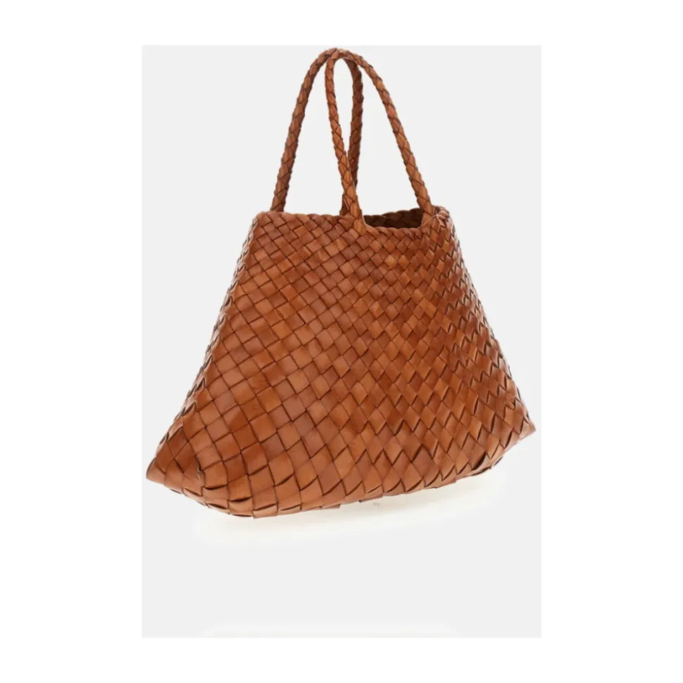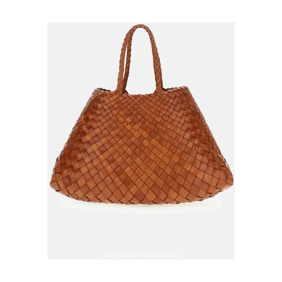 Dragon Diffusion Santa Croce Small er en håndvævet taske i kurvestil, fremstillet i bøffellæder. Dens åbne konstruktion uden foring og dobbelte håndtag gør den ideel til hverdagsbrug i byen eller afslappede udflugter. Vigtigste egenskaber: Tan | Bøffellæder | Uden foring | Åben top | Dobbelte håndtag | Håndvævet kurvemønster | Tilspidset top med diagonalt chevronmønster | Åben silhuet | Mål og pasform: Topbredde: 17 cm | Bundbredde: 38 cm | Længde: 20 cm | Håndtagshøjde: 16,5 cm | Sammensætning og pleje: Bøffellæder | Tørres af med en blød, tør klud. Undgå langvarig udsættelse for vand og direkte sollys. Opbevares i en støvpose, når den ikke er i brug. Ved pletter, kontakt en professionel læderrenser.