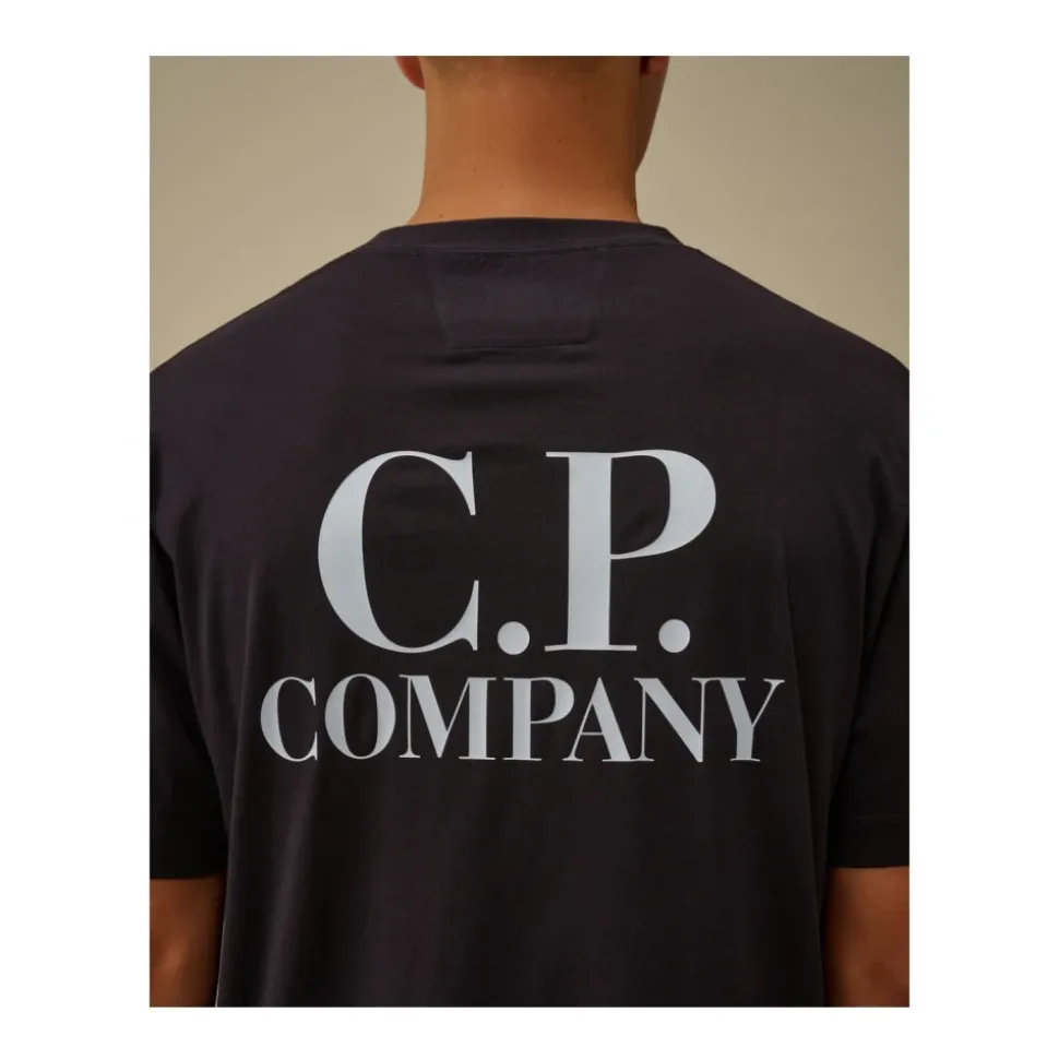 C.P. Company t-shirt med korte ærmer og logo-detaljer både foran og bagpå, fremstillet i 30/1 stof. En brandet kortærmet tee, der er velegnet til afslappet lagdeling og hverdagsbrug. Nøgleattributter: Blå | Azul Marino | Korte ærmer | Logo foran | Logo bagpå | 30/1 stof