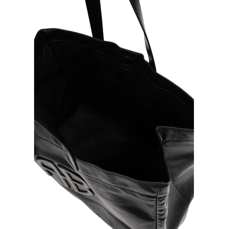 Vi præsenterer dig for en eksklusiv ‘SHOPPER’ taske fra den seneste kollektion af den anerkendte designer ANINE BING. Denne exceptionelle taske, lavet af det fineste sorte læder, udstråler elegance og luksus, og komplementerer enhver påklædning perfekt. Tasken har en rektangulær form med rene linjer, der fremhæver dens minimalistiske design. Den er udstyret med to robuste håndtag, der gør det behageligt at bære den over skulderen eller i hånden. På forsiden af tasken er der en diskret, præget designerlogo i form af bogstaverne.