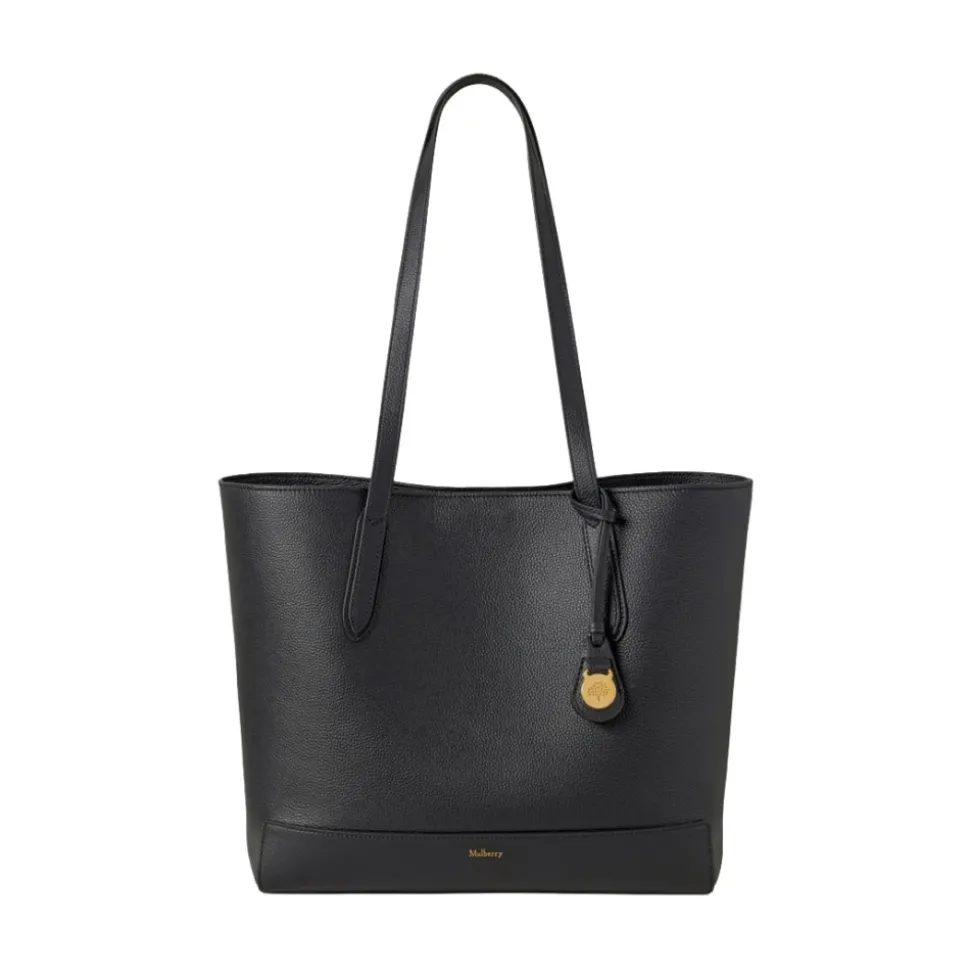 Mulberry Shopper Tote er en minimalistisk, slidstærk lædertaske designet til hverdagsbrug. Dens øst-vest silhuet og rummelige hovedrum gør den praktisk til arbejde og daglige fornødenheder. Vigtige egenskaber: Sort | Læder | Slidstærk konstruktion | Konvertibel top-hank eller skulderbæring | To læderhanke | Magnetlukning | En indvendig lynlåslomme | Hovedrum egnet til de fleste laptops | Minimalistisk øst-vest silhuet | Foliepræget Mulberry signatur | Hængende Mulberry Tree medallion | Mulberry Tree foring | Messing hardware | Dimensioner og pasform: Højde: 28 cm | Bredde: 31 cm – 42 cm | Dybde: 11 cm | Hank fald: 29.5 cm | Kan bæres i hånden eller over skulderen | Hovedrum passer til de fleste laptops | Sammensætning og pleje: 100% Læder