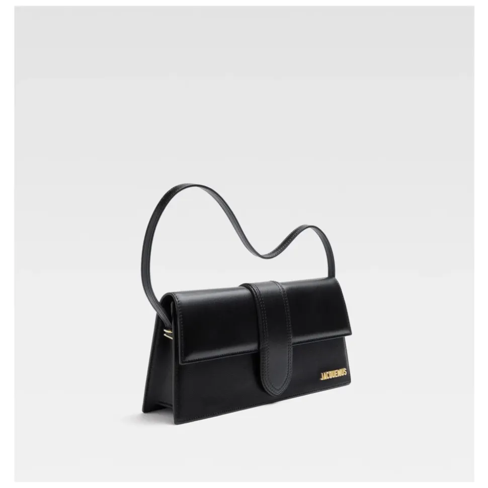 Jacquemus skuldertaske med metal logo detalje og klaplukning. Den har et enkelt håndtag og en indvendig lomme til kompakt hverdagsbrug. Nøgleattributter: Sort | Nero | Enkelt håndtag | Klaplukning | Indvendig lomme | Metal logo detalje | Fremstillet i Italien | Mål & pasform: Højde: 13,5 cm | Bredde: 28 cm | Dybde: 4 cm | Håndtagshøjde: 21 cm
