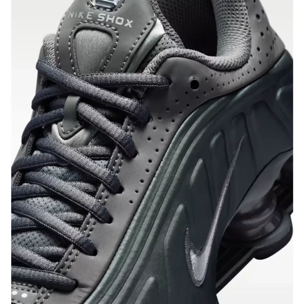 Nike Shox R4 opdaterer ikonet fra de tidlige 2000’ere med futuristiske designlinjer og Nike Shox-hælsøjler, der leverer performance-inspireret stødabsorbering og et markant look. Nøgleattributter: Grå | Grigio | Syntetisk læder | Responsiv Shox-stødabsorbering | Åndbar laserperforeret overdel | Slidstærk gummiydersål med greb | Nike Shox-hælsøjler til vægtfordeling | Klassisk snørelukning | Retro silhouette fra de tidlige 2000’ere med futuristiske designlinjer | Modificeret cirkulær Waffle-ydersål | Sammensætning & pleje: Syntetisk læder | Gummiydersål