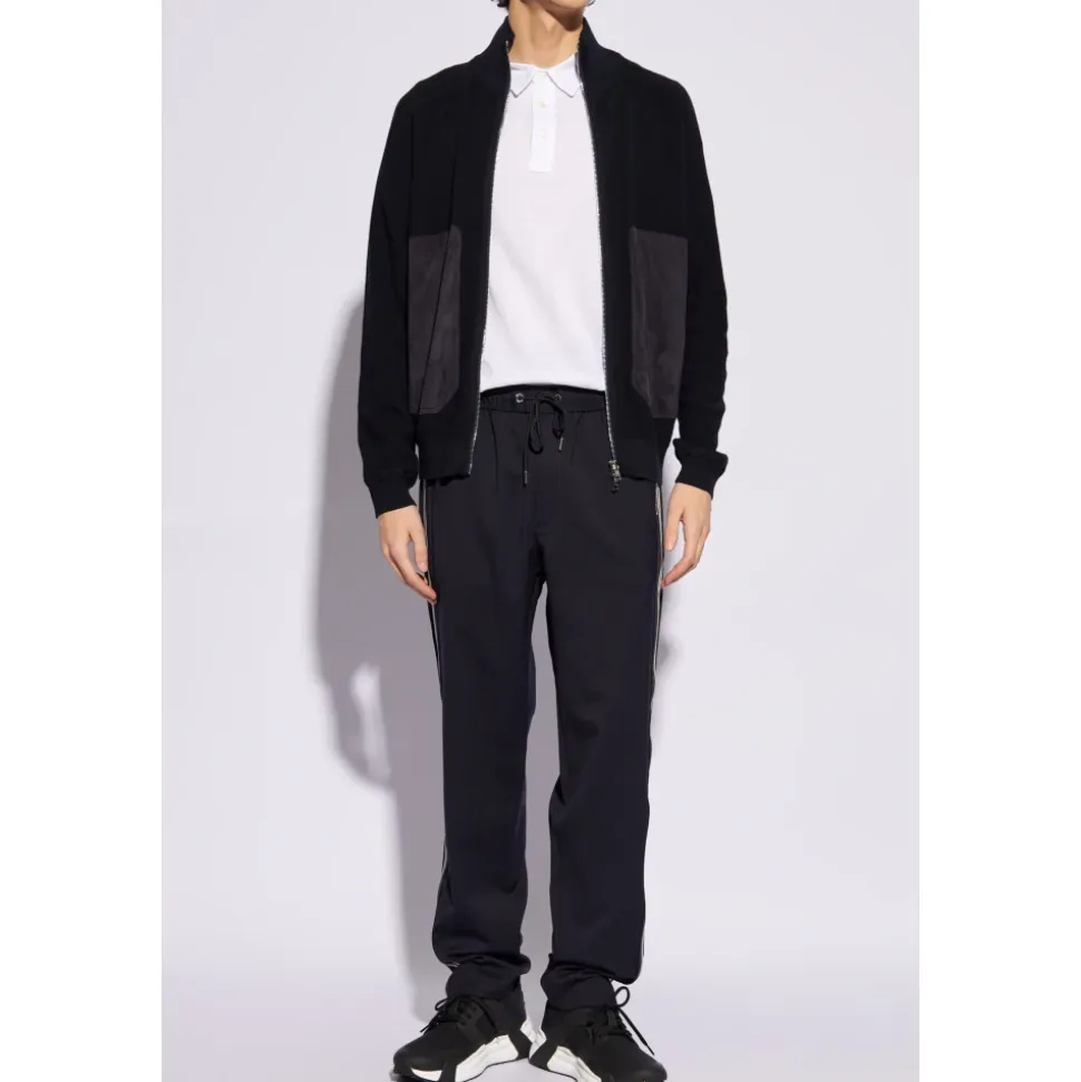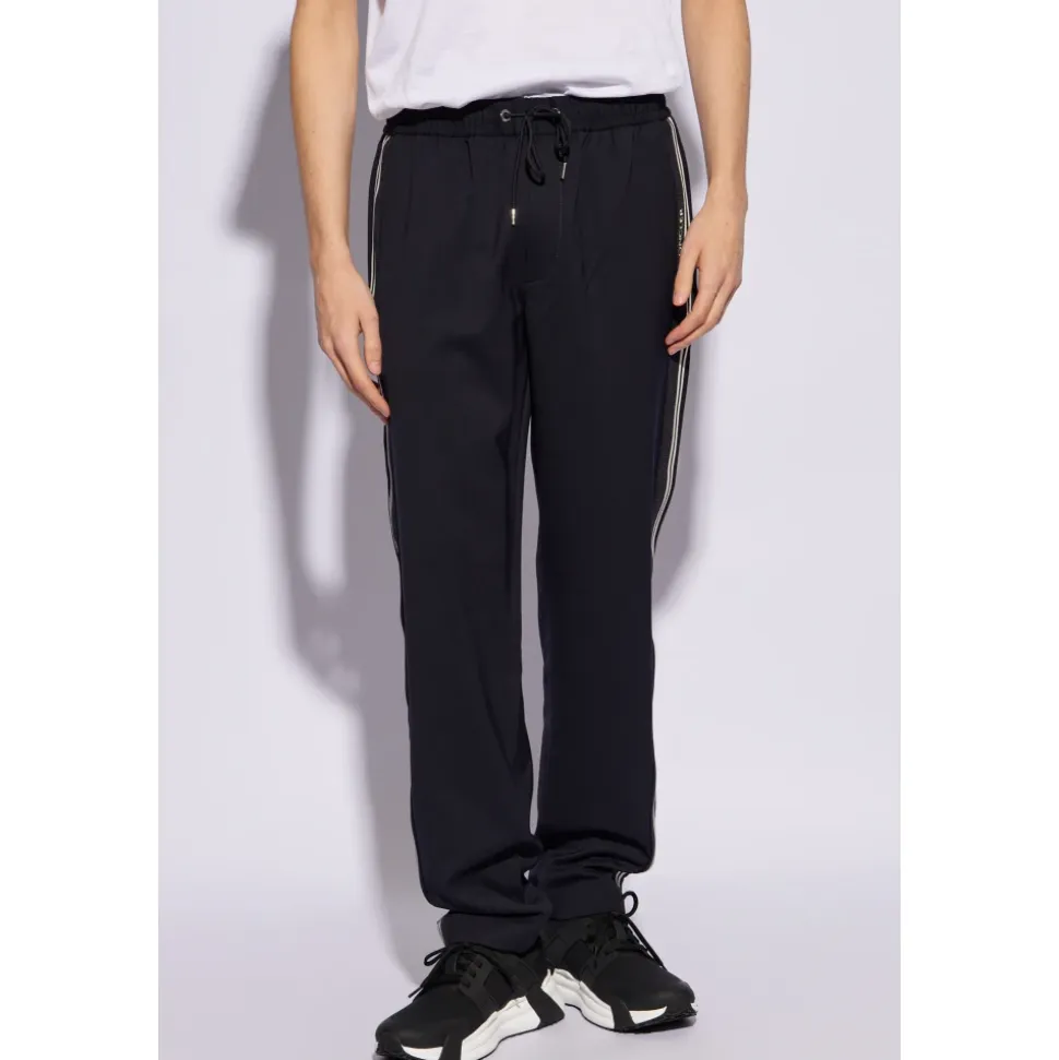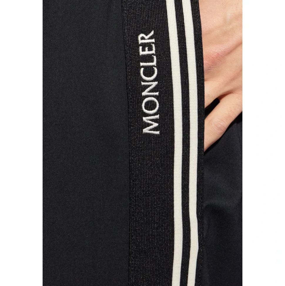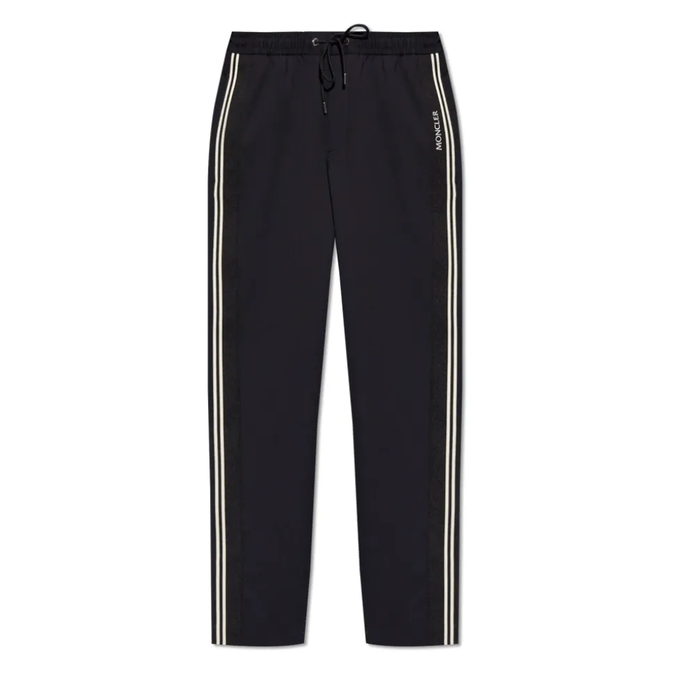 Monclers Side-stripe Bukser tilbyder en stilfuld blanding af komfort og funktionalitet, perfekt til afslappede udflugter. Med et farverigt logo-patch på bagsiden er disse bukser designet til dem, der sætter pris på subtil branding med praktisk design. Produkt detaljer: Navy Blue | Blue | Uld | Polyester | Snøre i taljen | To forlommer | To baglommer med klap og trykknapper | Let tilspidsede ben | Sort og hvid sidepaneler | Broderet logo | Dimensioner og pasform: Regular fit | Sammensætning og pleje: 54% Uld | 46% Polyester | Renseri anbefales