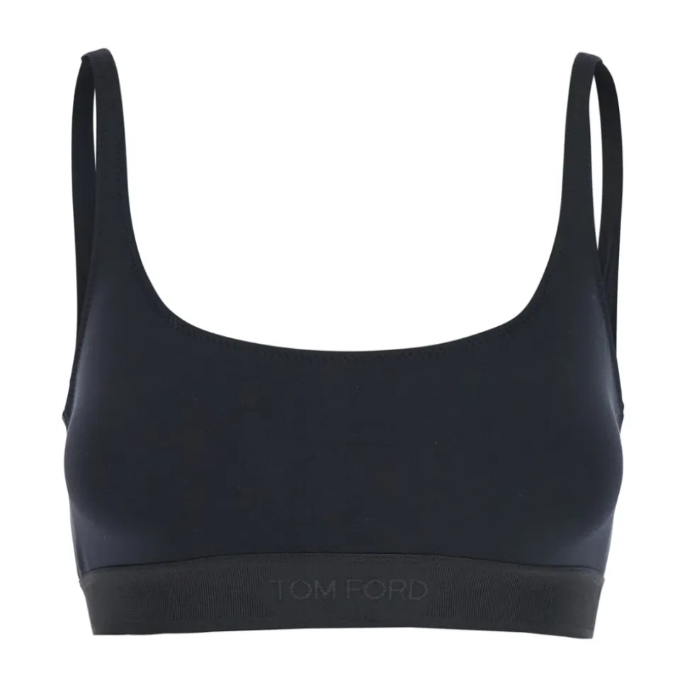 Tom Ford Signature Bralette er en modal-stretch bralette, der kombinerer en strømlinet scoop-hals med et jacquard logo-bånd for let støtte og en sømløs silhuet. Den fungerer som et minimalistisk lag-på-lag stykke eller en selvstændig top til aktiviteter med lav intensitet. Nøgleattributter: Sort | Modal stretch | Strækstof | Faste skulderstropper | Scoop-hals | Jacquard logo-bånd | Ribkant | Dimensioner og pasform: Regular fit | Sammensætning og pleje: Krop: 92% modal, 8% elastan | Kant: 82% polyester, 9% polyamid, 9% elastan | Håndvask