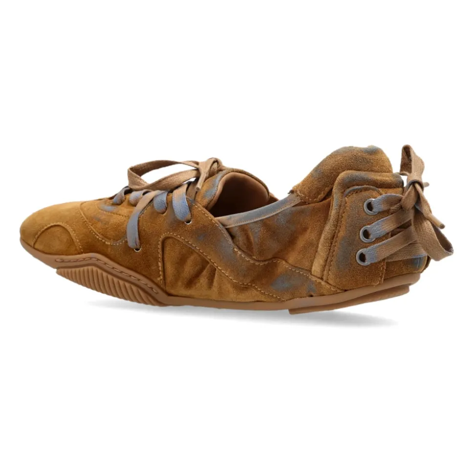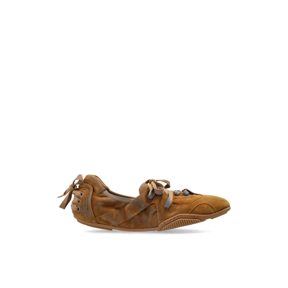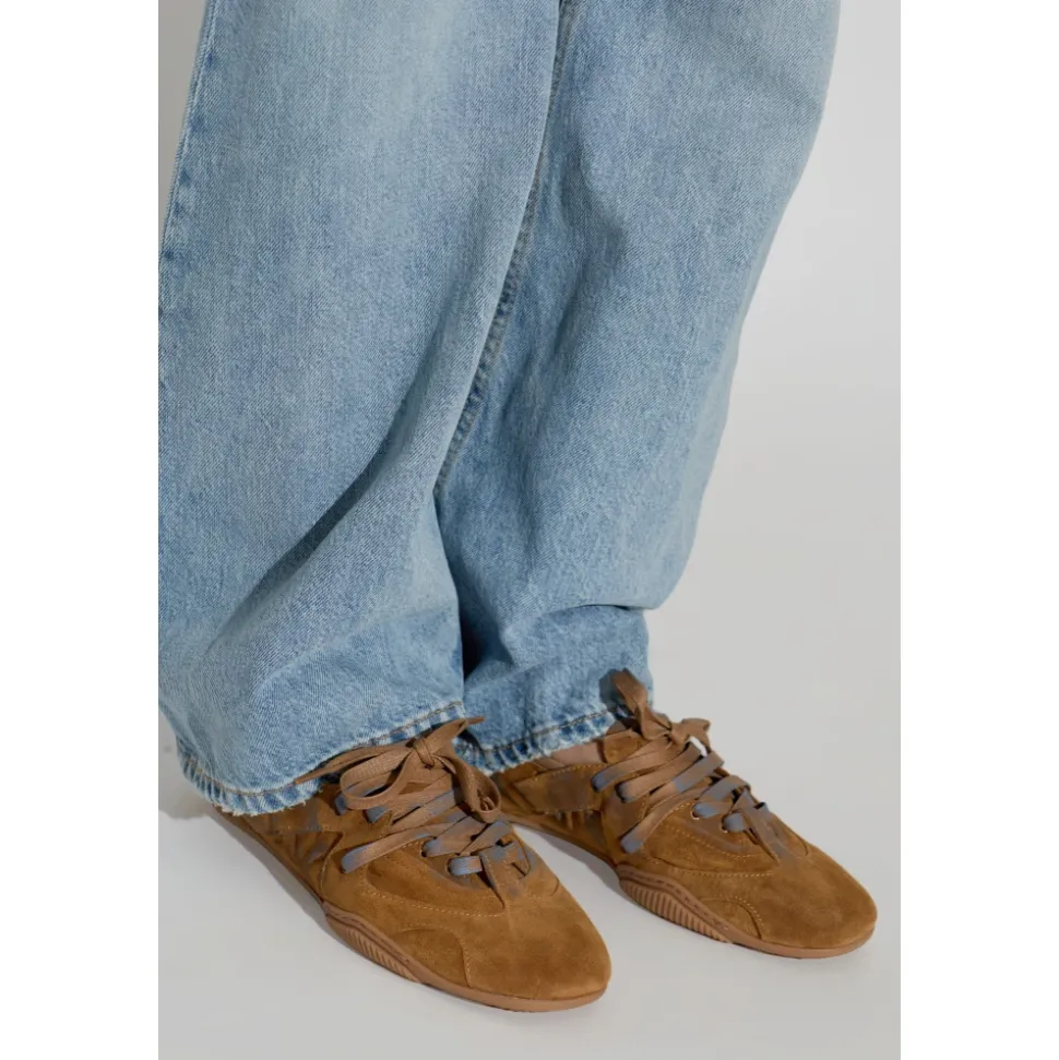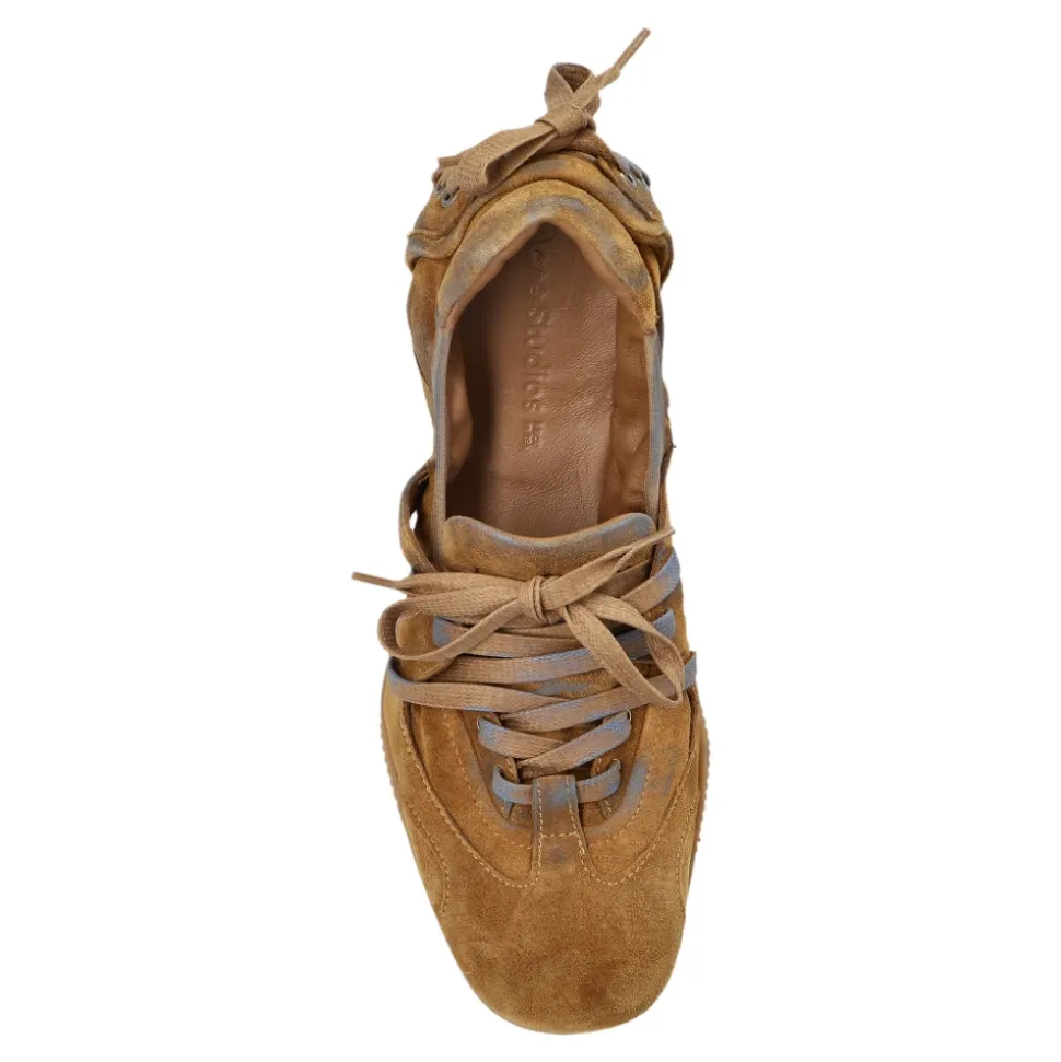 Acne Studios sko i ruskind med snørebånd kombinerer en lav ruskindsoverdel med et komplet læderinteriør for raffineret, komfortabel hverdagsbrug. Håndlavede detaljer og en fleksibel sål med mønster gør dem velegnede til et poleret, afslappet outfit. Vigtigste egenskaber: Brun | Ruskind | Snørelukning | Brede ruskindssnørebånd | Metaløjer | Læderforing | Gummisål/TPU-sål med mønster | Lav silhuet | Subtilt afrundet tå | Dekorative syninger | Delikate geometriske indsatser | Logo på pløsen | Snøredetalje ved hælen | Dimensioner og pasform: Sålhøjde: 5 mm | Anatomisk formning for en harmonisk pasform | Passer normal i størrelsen | Sammensætning og pleje: Overdel: 100% kalvelæder | Foring: 100% lammeskind | Sål: 100% termoplastisk polyuretan