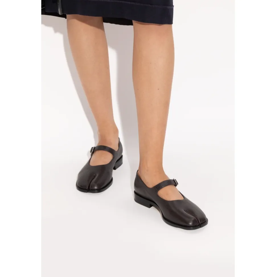 TABI CUT-OUT SKO fra Maison Margiela er en harmonisk blanding af avantgarde-æstetik og klassisk form. Den karakteristiske Mary Jane ballet flade silhuet med en afrundet hæl får en ny dimension takket være den splittede Tabi tå – en subtil nik til japansk tradition, der tydeligt adskiller disse sko fra konventionelle fodtøjsmuligheder. Både det ydre og indre lag er lavet af det fineste kvalitet præget fuldkorn læder, hvilket sikrer ikke kun enestående blødhed, men også enestående holdbarhed og komfort. En beskeden, stabil hæl og en delikat, justerbar rem med en metal spænde giver enestående komfort og raffineret stil. Den minimalistiske finish og signatur