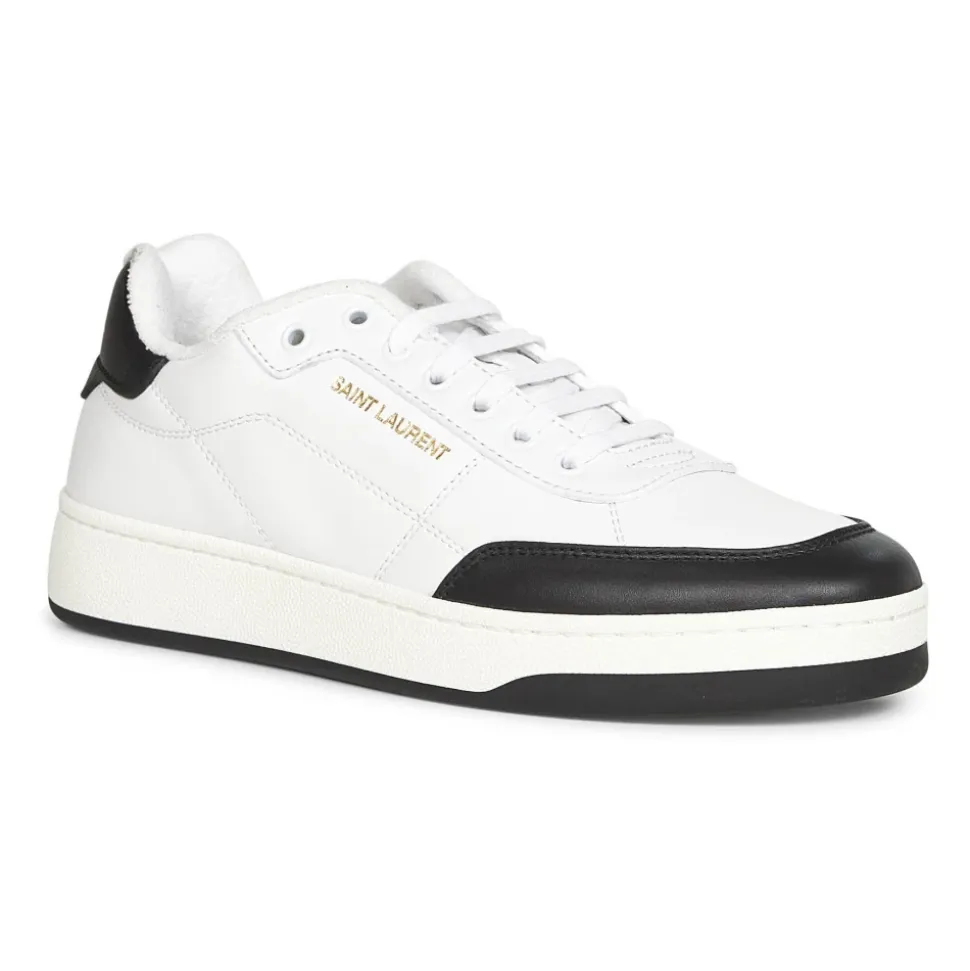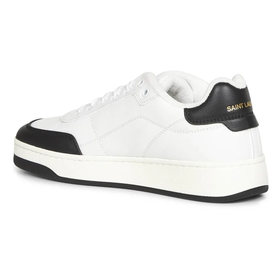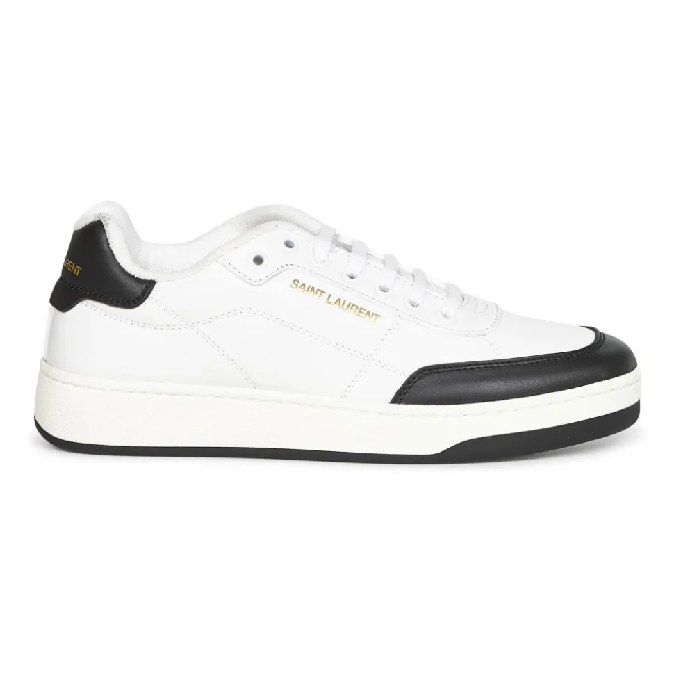 Saint Laurent SL/61 Sneakers kombinerer glat kalvelæderkonstruktion med kontrasterende sorte indsatser og guldfarvede signaturdetaljer for en raffineret hverdags-sneaker. Vigtige egenskaber: Optisk hvid | Sort | Kalvelæder | Snørelukning foran | Terry-foring | Hvid gummisål med sort slidbane | Rund tå | Kontrasterende sorte læderindsatser ved tå og hæl | Guld Saint Laurent-signatur på siden og på hælindsatsen | Saint Laurent-signaturmærke på pløsen | Sammensætning & pleje: 100% kalvelæder | Terry-foring | Gummisål
