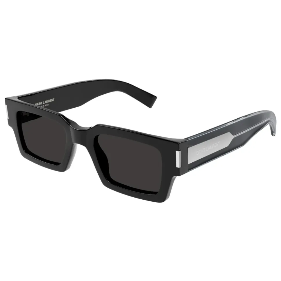 Saint Laurent SL572 solbriller leverer en markant firkantet silhuet med brandets ‘Naked Wirecore’-detalje og en udtalt 1 cm hjørnevinkel for et stærkt, moderne udtryk. Nøgleattributter: Sort | Acetat | 100% UV-beskyttelse | Kategori 3 nylonlinser | Synlig metaltrådkerne | Lasergraveret logo på stangen | Kompatibel med receptpligtige linser | Firkantet silhuet | Tykke acetatstænger | Udtalt 1 cm hjørnevinkel | Dimensioner og pasform: Linsebredde: 50 mm | Brobredde: 22 mm | Stanglængde: 145 mm | Sammensætning og pleje: Stel: Acetat | Linser: Nylon | Tør linserne af med en mikrofiberklud; opbevar i beskyttende etui; undgå slibende rengøringsmidler og høj varme.
