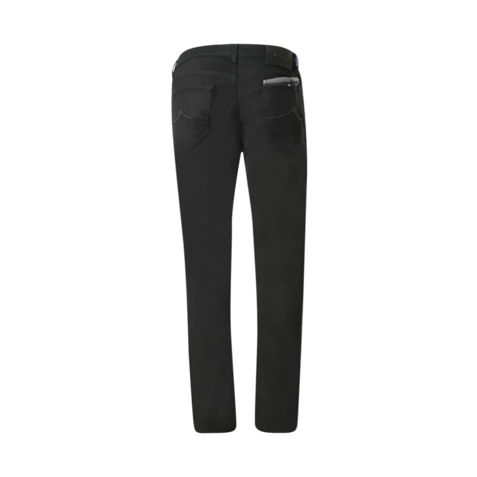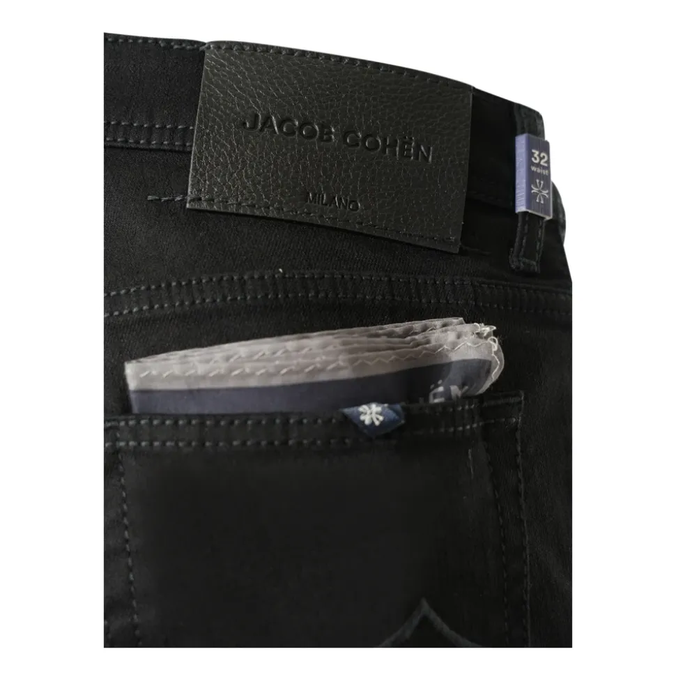 Jacob Cohën Slim-fit Jeans kombinerer raffineret skrædderkunst med blød, let-strækbar denim for en moderne hverdagsbuks. De har en justerbar linning og femlomme-design for komfort og alsidighed. Nøgleegenskaber: Sort | Denim | Let stræk | Blød fornemmelse | Holdbar | Justerbar linning med knap | Knap- og lynlåslukning | Bæltestropper | Femlomme-design | Slank silhuet | Raffinerede detaljer | Dimensioner og pasform: Slim fit | Justerbar linning for en tilpasselig pasform | Sammensætning og pleje: 94% Bomuld | 4% Elastomultiester | 2% Elastan | Maskinvask kold, skånsom cyklus; vask vrangen ud; må ikke bleges; tørretumbles lavt eller hænges til tørre; varmt strygejern hvis nødvendigt.