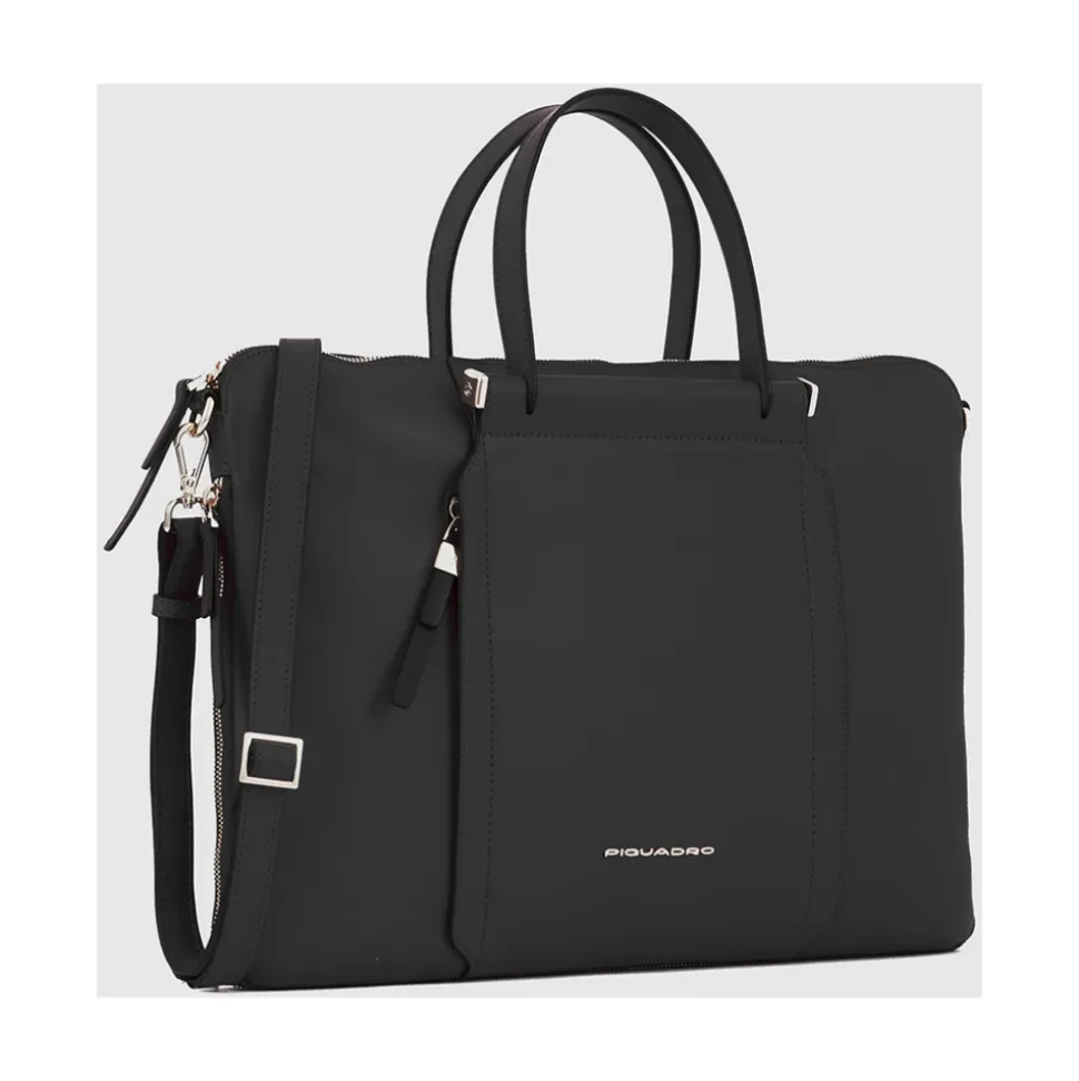 Udvidelig, slank damecomputer taske i læder med iPad® rum, støddæmpende og RFID beskyttelse