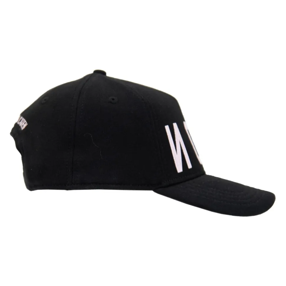 Opgrader din street style med denne Dsquared2 baseball cap. Lavet af 100% bomuld, den har ‘ICON’ skrift i omvendt på forsiden, sammen med mærkenavnet i en kontrastfarve. Bagsiden viser præget skrift i en anden farve og er færdiggjort med en plastik snap lukning bagpå. One size passer til alle.