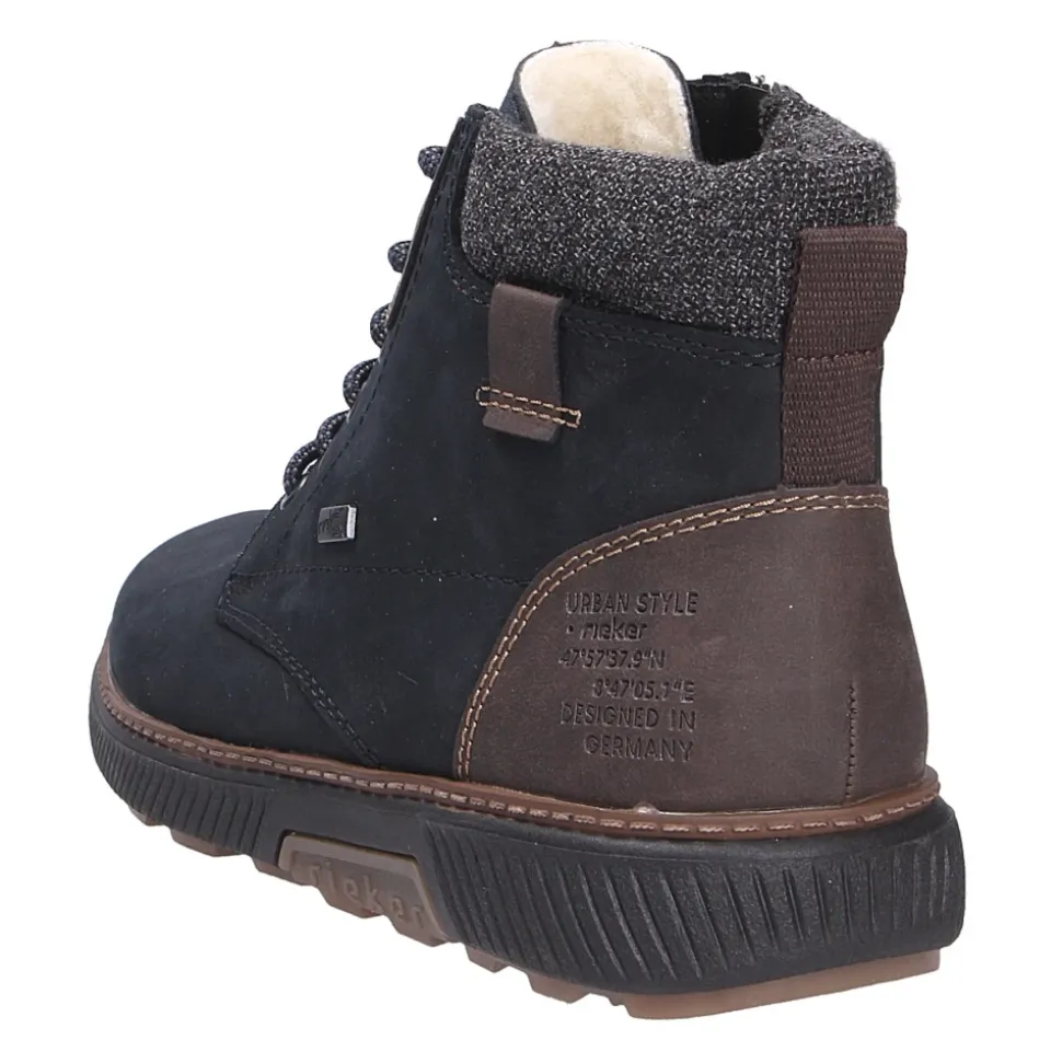 Rieker snørestøvler kombinerer blødt nubucklæder med et varmt uldfoer for pålidelig komfort i koldt vejr. Støvlen har en vandafvisende RiekerTex-membran og en skridsikker gummisål til daglig brug i vådt vejr. Nøglefunktioner: Blå | Blau | Nubucklæder | Vandafvisende membran (RiekerTex) | Varmt uldfor | Slidstærk, skridsikker gummisål | Snørelukning for justerbar pasform | Aftagelig, blødt polstret tekstilindersål | Ekstra plads til at rumme ortopædiske indlæg | Blød, børstet nubuckoverflade | Rund snude | Flad, kontinuerlig lav hæl | Mål og pasform: Almindelig størrelse (normal i størrelsen) | Bredde: H (bred pasform) – ekstra plads til bredere fødder | Medium skaftbredde – egnet til normal lægomkreds | Aftagelig indersål skaber plads til specialfremstillede ortopædiske indlæg | Sammensætning og pleje: Nubucklæder | Uld (foer) | Tekstil (aftagelig indersål) | Gummi (sål) | RiekerTex membran