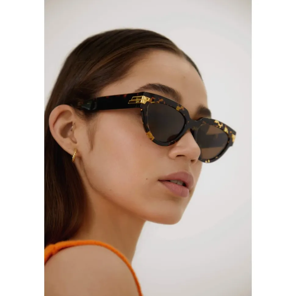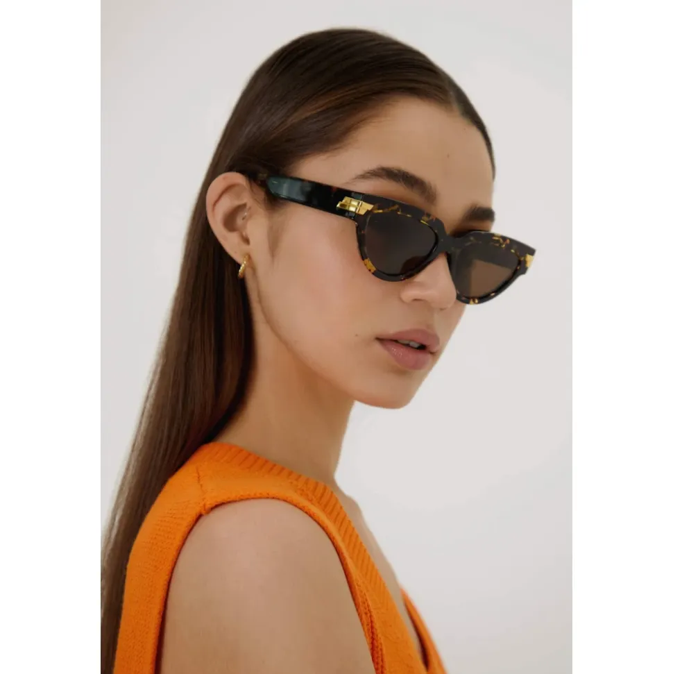 Forkæl dig selv med disse Bottega Veneta solbriller. Med en elegant cat eye-design, rammer med gulddetaljer og en diskret logo på siderne. Lavet af acetat i høj kvalitet. Linsebredde: 55 mm; Næsebroens længde: 19 mm; Tamplets længde: 145 mm.
