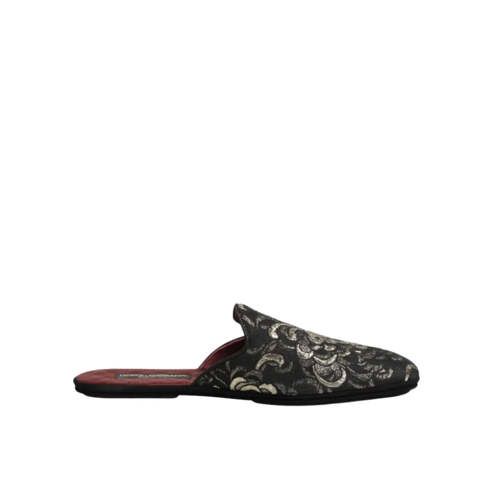 Forkæl din afslappede fodtøjssamling med disse sorte Floral Jacquard Slides Slippers Shoes fra Dolce & Gabbana. Designet til mænd har disse slides et luksuriøst blomstret jacquardmønster, der tilføjer et strejf af sofistikation til ethvert outfit. Det elegante sorte design sikrer alsidighed og gør dem perfekte til både indendørs og udendørs brug.