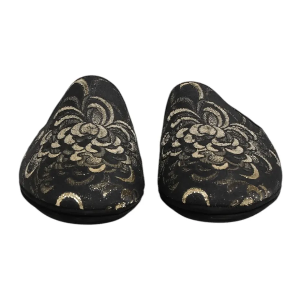 Sort Blomstret Jacquard Slides Sko