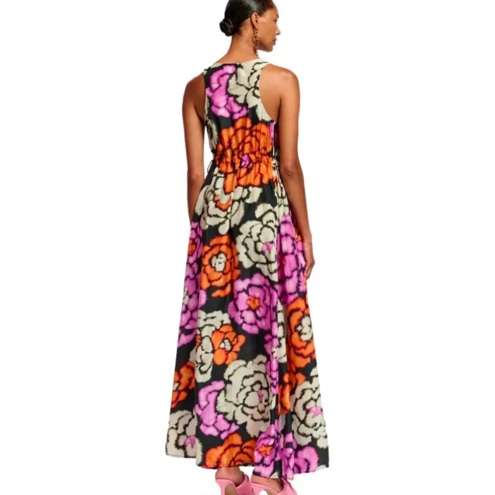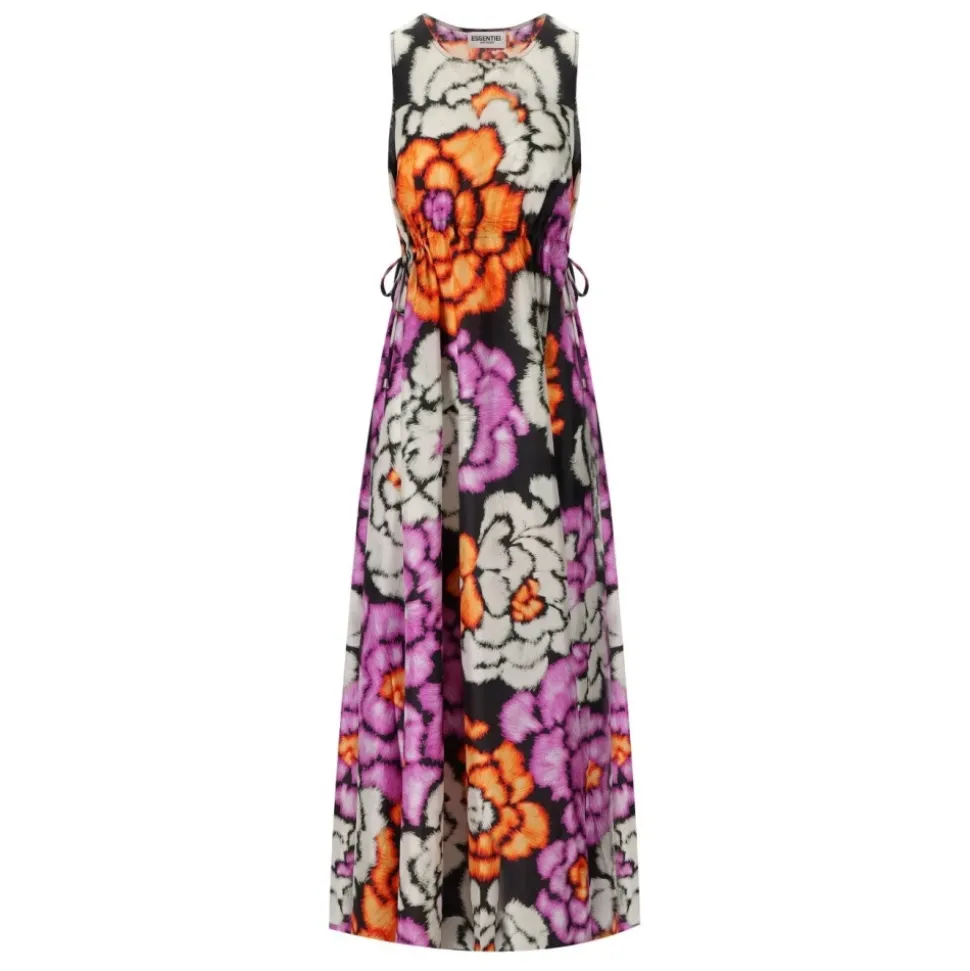 Opgrader din garderobe med denne fantastiske sorte blomstrede lange silkekjole fra Essentiel Antwerp, fremstillet af luksuriøs silke og med et levende, flerfarvet blomstermønster. Produkt detaljer: Sort | Flerfarvet | Silke | Snøredetalje i siderne | Afslappet pasform | Maxi længde | Dimensioner og pasform: Afslappet pasform | Sammensætning og pleje: 100% Silke | Renseri anbefales
