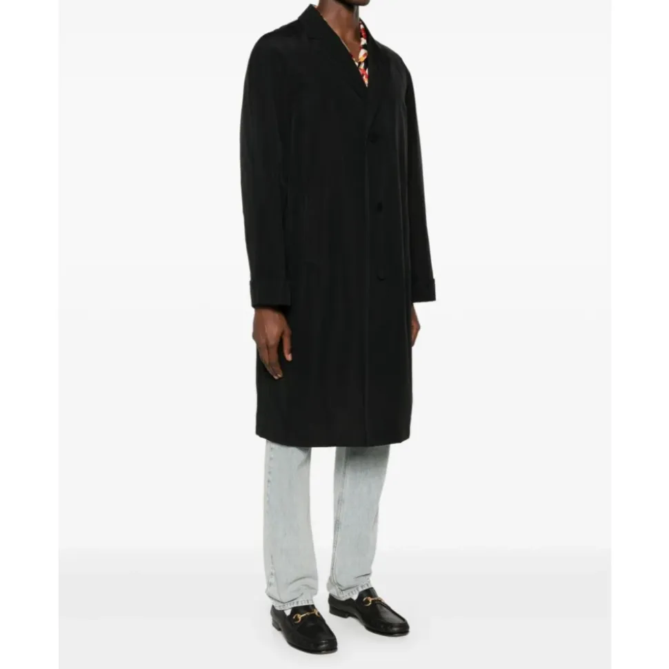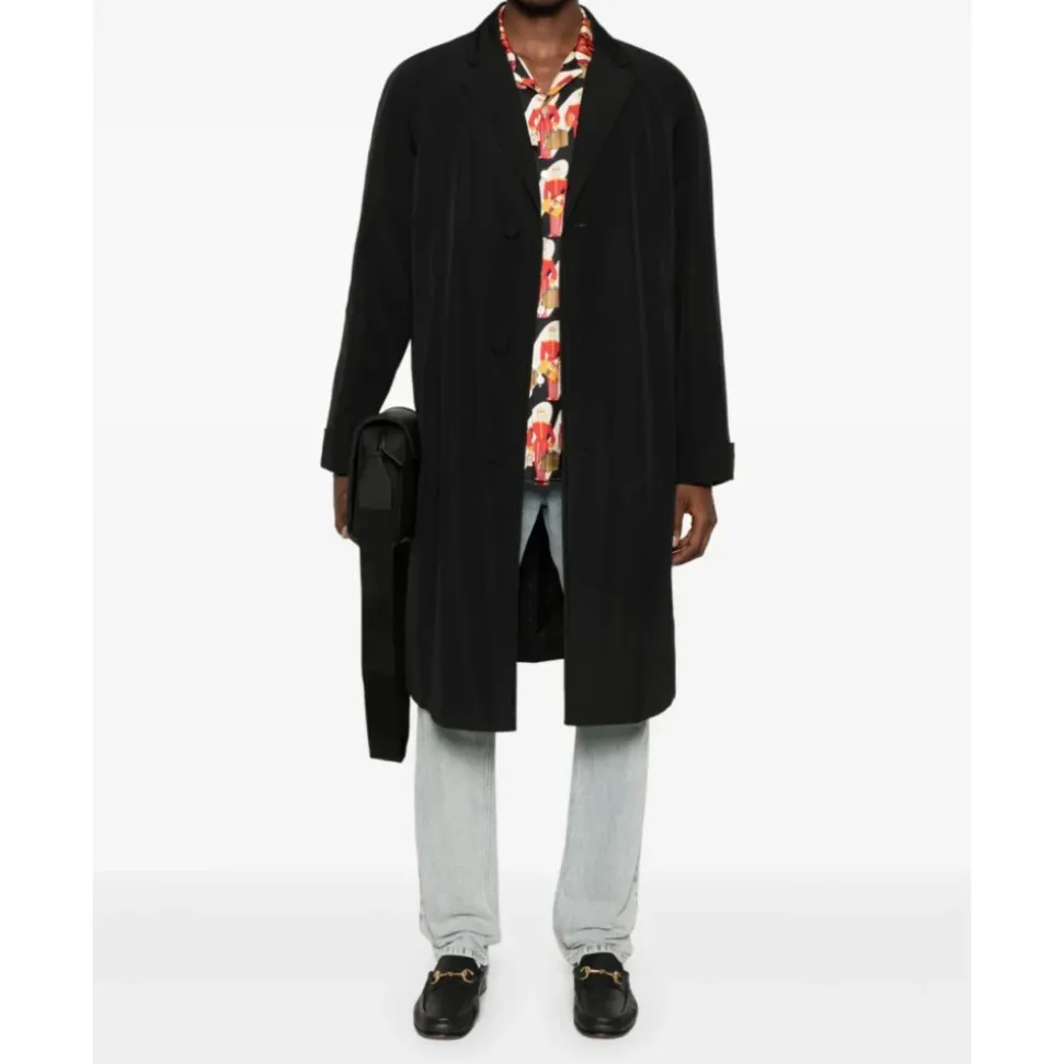 Forkæl din garderobe med denne Gucci Single-Breasted Cotton Poplin Coat i sort. Med knaplukning og det ikoniske Gucci-logo er denne frakke lavet i Italien af en blanding af 57% bomuld og 43% polyamid.