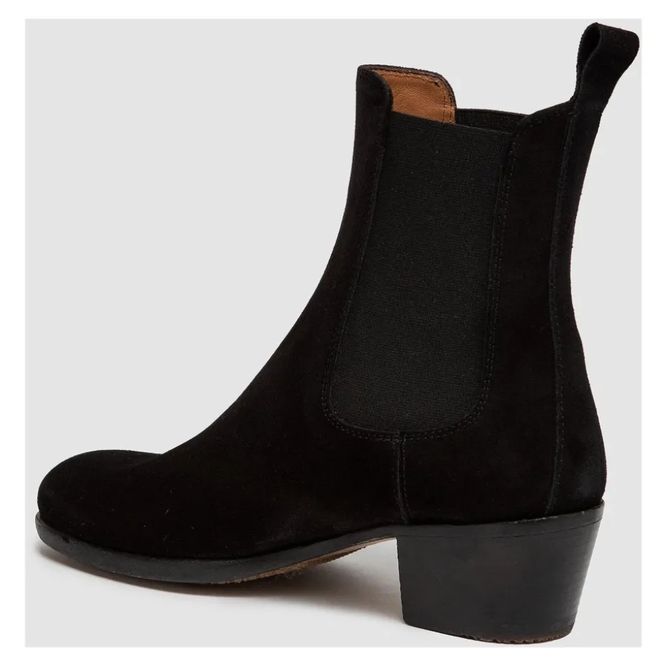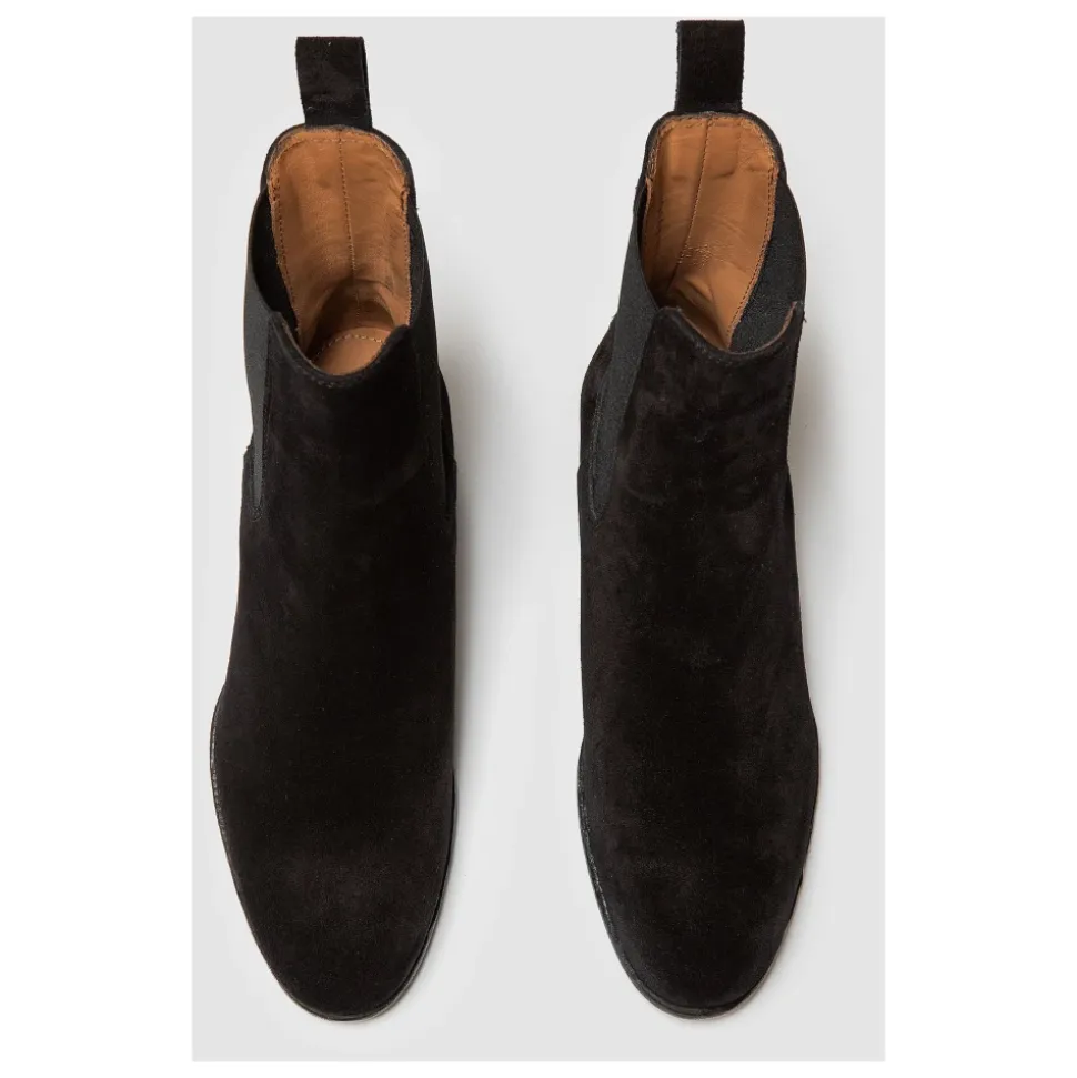 Forhøj din stil med disse Elia Maurizi Chelsea ankelstøvler. Håndlavet med blød vegetabilsk garvet og olieret ruskind læder, med indvendig foring i nappa og en gummisål syet til overdelen. I klassisk sort, har disse støvler en hæl på 5 cm og passer normalt.