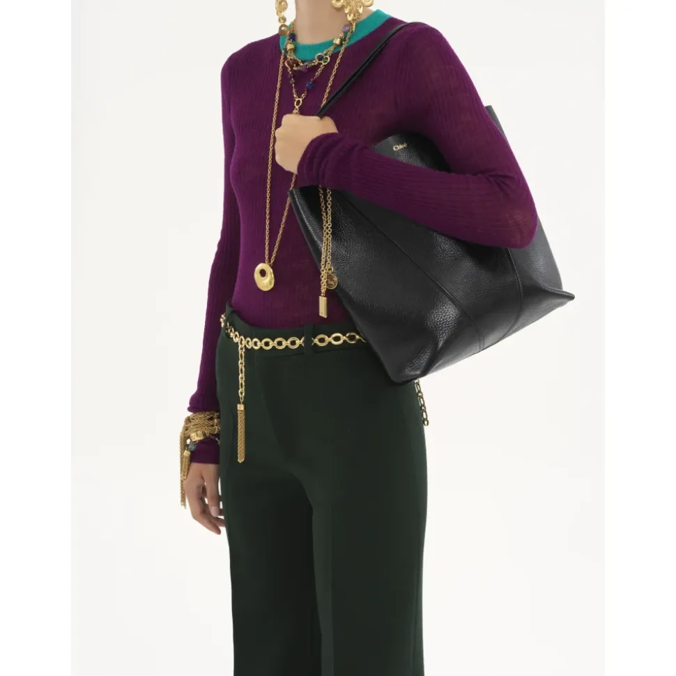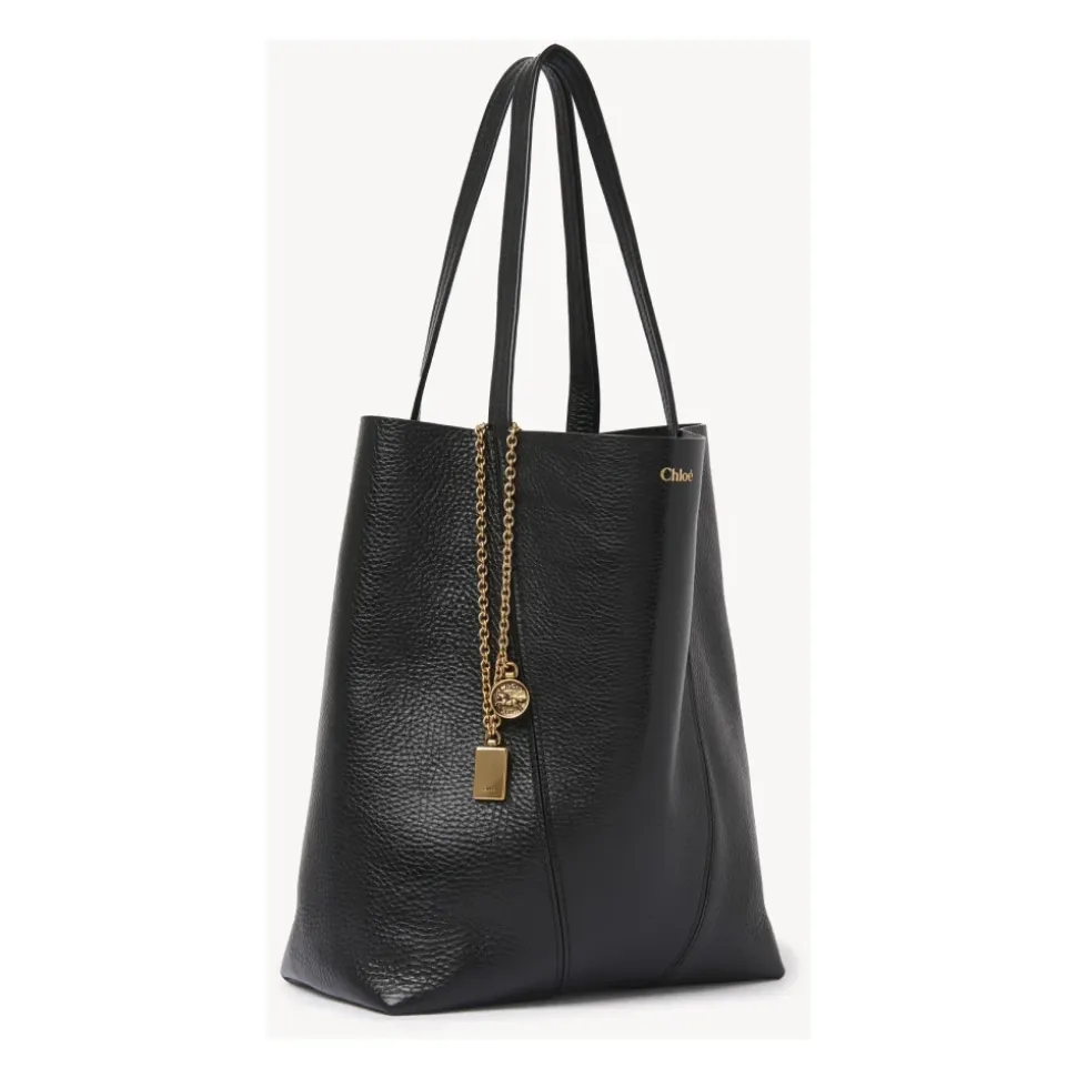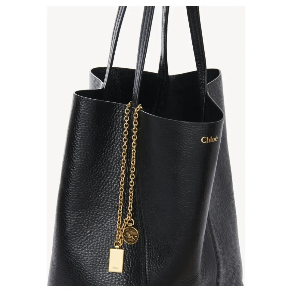 Oplev elegancen ved denne Chloé tote taske, fremstillet i Italien af førsteklasses læder, med karakteristiske kædehanke prydet med Chloés signatur og hestemedaljer. Produkt detaljer: Sort | Læder | Hovedrum | Kædehanke | Signatur Chloé og hestemedaljer | Dimensioner og pasform: H30cm x B27cm x D14cm | Sammensætning og pleje: 100% Læder | Aftørres med en blød klud