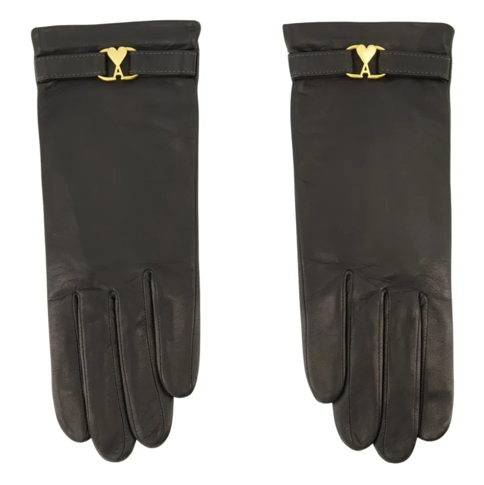 Forhøj din stil med de sorte læder AMI de Coeur handsker fra AMI Paris, et elegant tilbehør til kvinder. En del af efterår-vinter 2025 kollektionen, lavet af lammeskind.