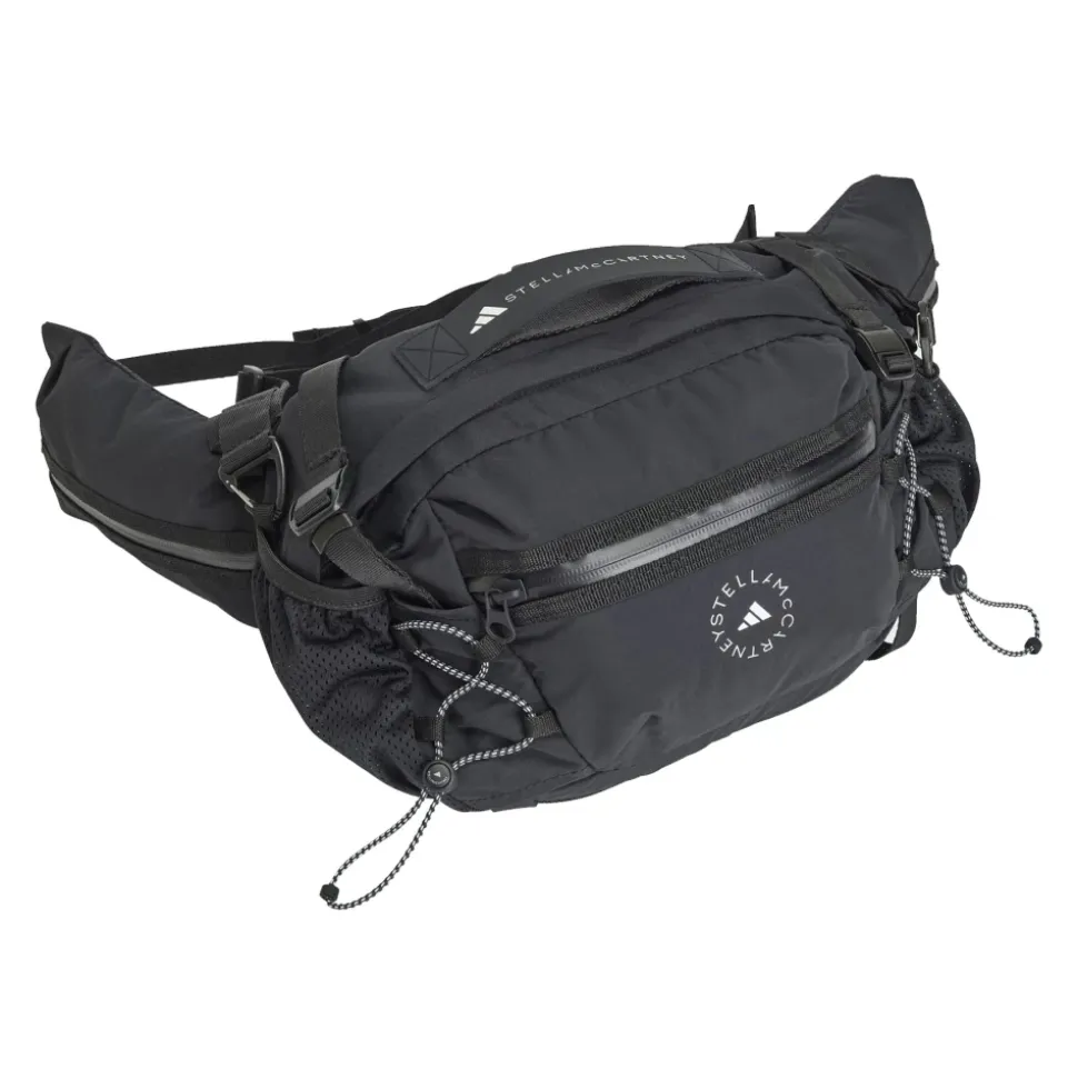 Hold dig organiseret og stilfuld med denne alsidige sorte bæltetaske fra Adidas by Stella McCartney. Med en hovedlomme med tovejs lynlås, sidelommer med lynlås, skjult lynlåslomme og ekstra skulderrem kan denne multipurpose taske bæres omkring taljen eller på tværs af kroppen. Komplet med en frontlogo, dimensionerne er 32 x 21 x 12 cm (9 L). Lavet af 100% polyester. Varekode: JJ0999.
