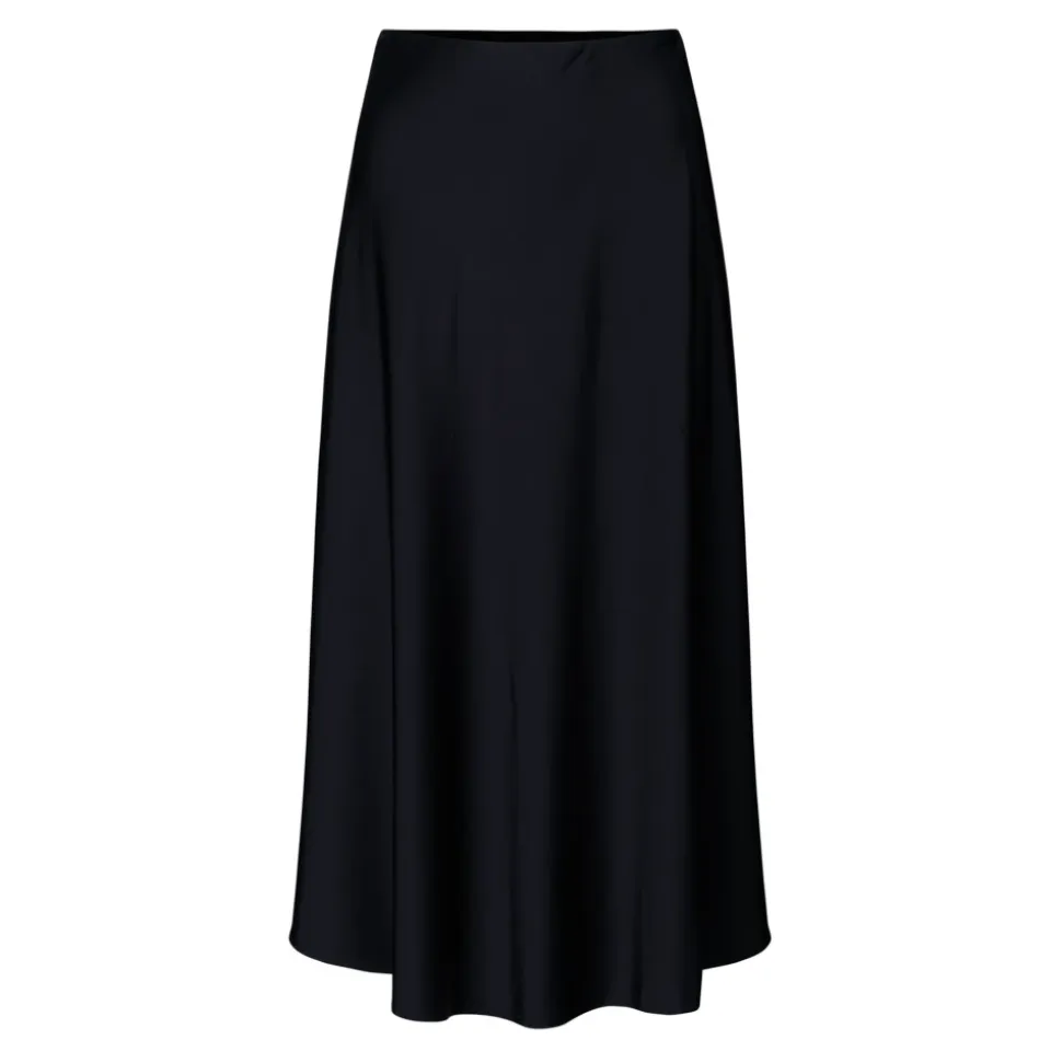 Flot og enkel Munthe midi nederdel til kvinder med en elastisk talje og en luksuriøs kvalitet, der falder smukt. Findes i sort.