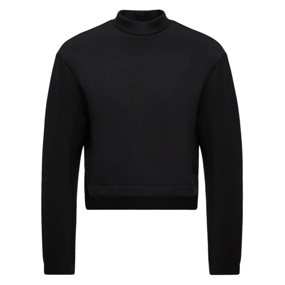 Forkæl dig selv med denne Moncler sweatshirt til kvinder. Lavet af viskose neopren, har den en rund hals, lange ærmer og et logo-patch. Produceret i Italien er denne sorte sweatshirt et alsidigt garderobestykke. Modellen på billedet har størrelse XS. Stofdetaljer: 5% elastan, 95% viskose.
