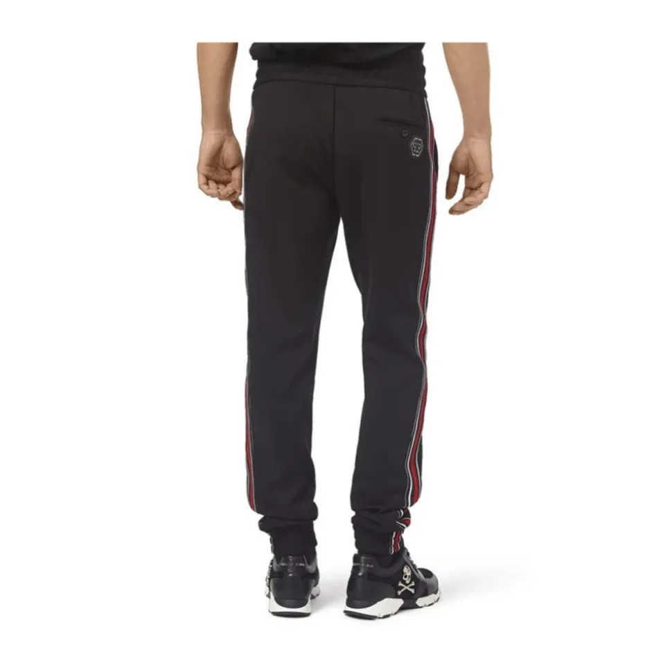 MRT0222 ODDITY sweatpants fra Philipp Plein i sorte nuancer. Slim fit med medium elastisk talje. Har syet metallogo, 3 lommer og slip-on lukning. Anbefales håndvask. Materiale: 65% bomuld, 30% polyester, 5% elastan. Tag din sædvanlige størrelse.