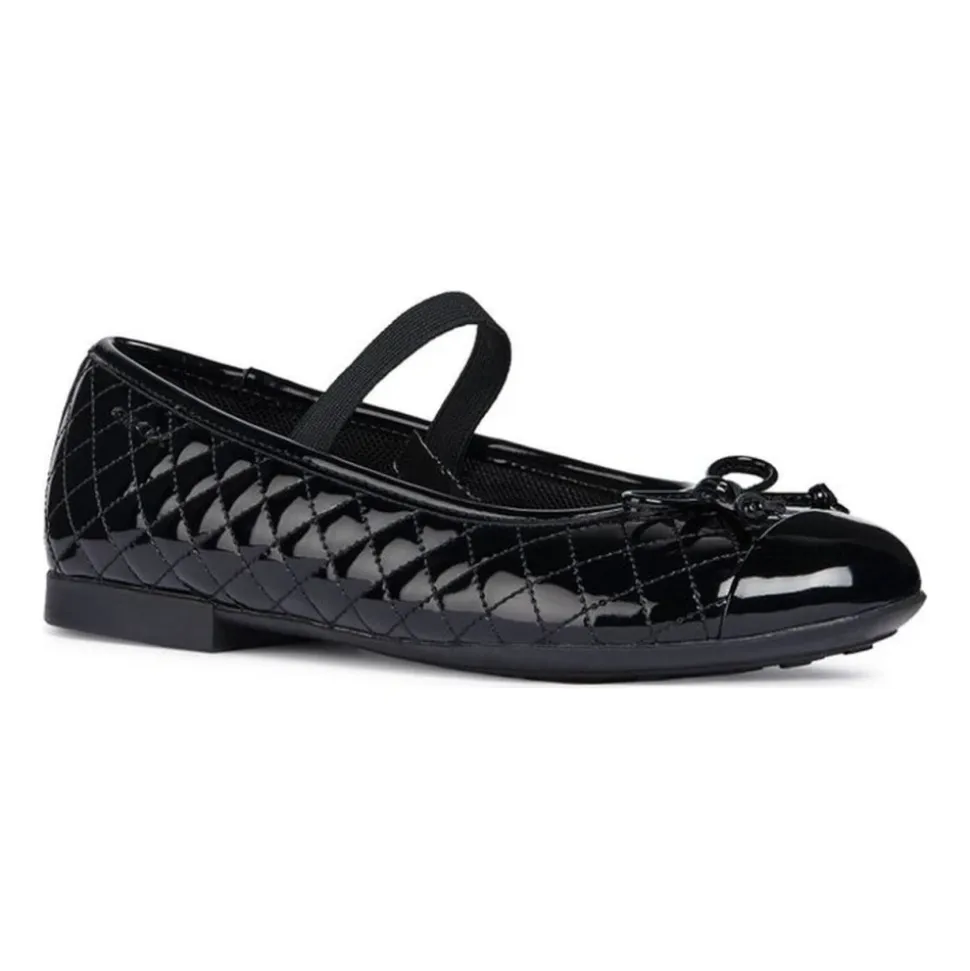 Præsenterer Geox Piger Ballerina Sko i sort. Disse stilfulde ballerinaer er perfekte til unge fashionistas. Fremstillet med en holdbar polyurethan overdel og en behagelig polyester foring, er disse sko designet til at holde små fødder glade hele dagen. Ydersålen af gummi giver fremragende trækkraft og stabilitet. Med deres elegante design og højkvalitetskonstruktion er disse Geox ballerinaer et must-have til enhver ung piges garderobe. Produktkode: J5455B 000HH C9999.